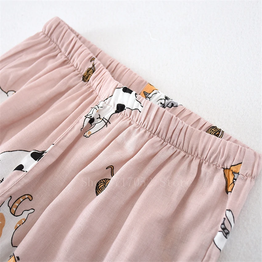 Пижама-кимоно Женская с принтом кота, домашняя одежда, длинные брюк...