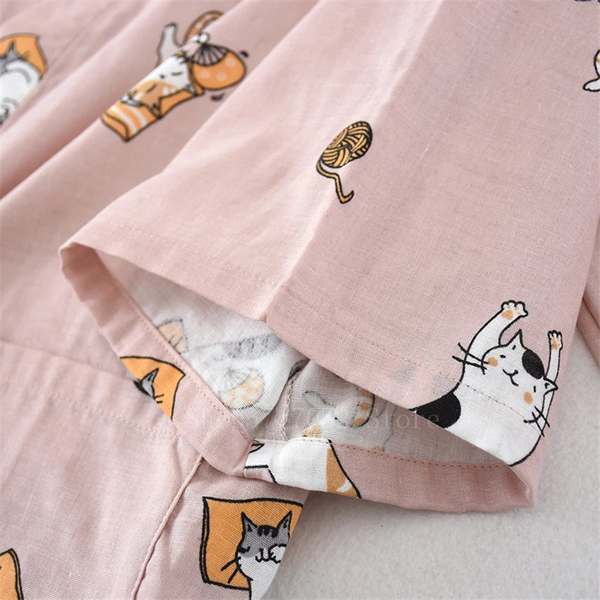 Комплект японских пижам для влюбленных из 2 предметов, кимоно с принтом Kawaii, традиционная хлопковая одежда для мужчин и женщин, халат, ночная рубашка