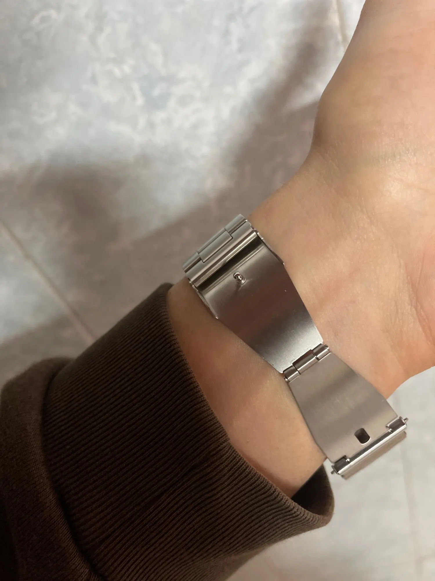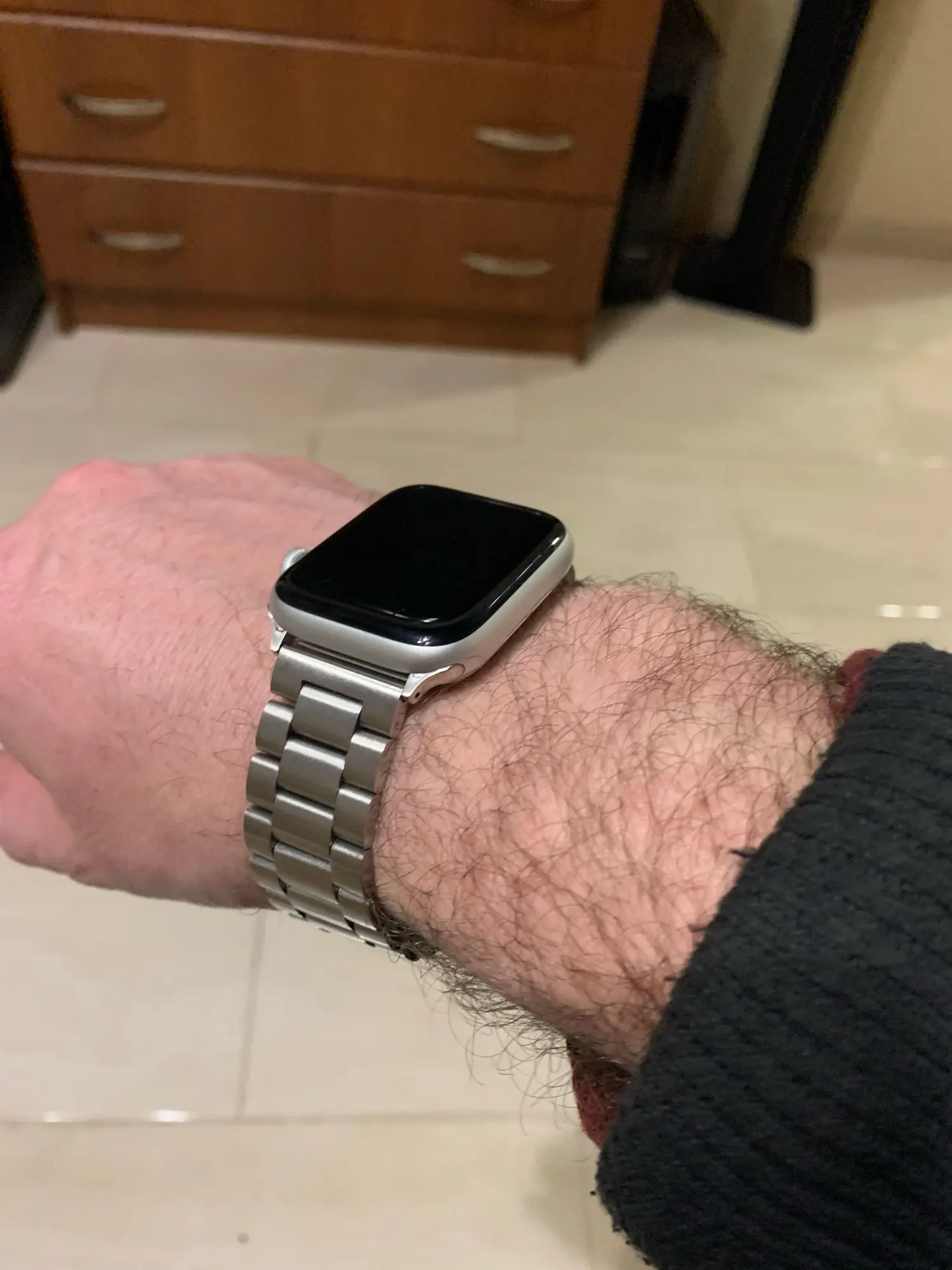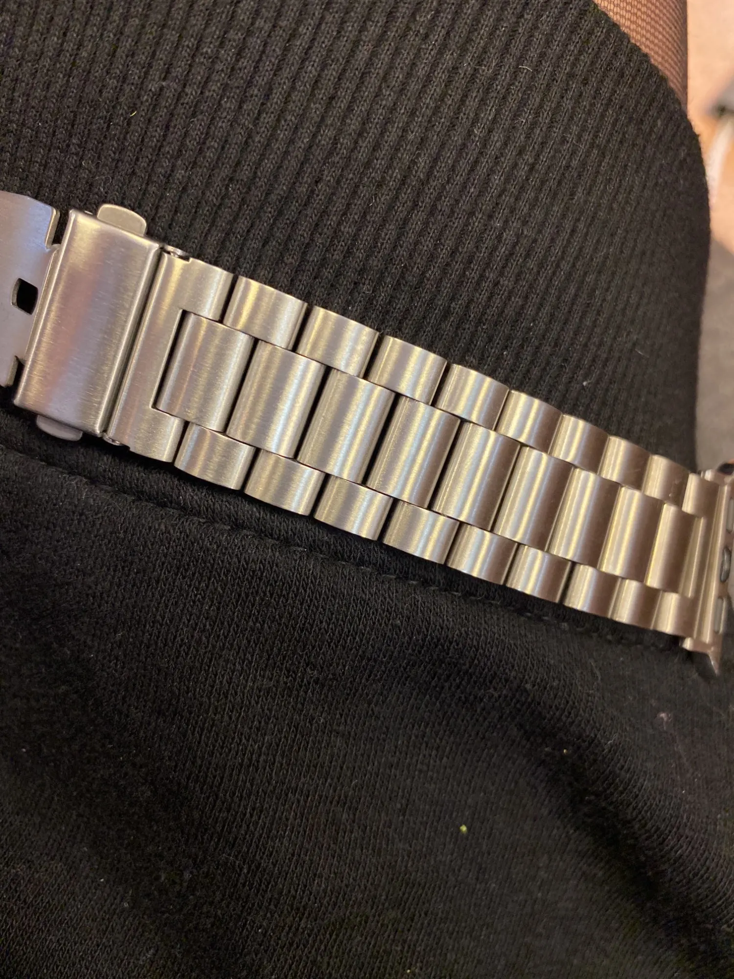 Браслет «запоминающийся» благодаря комплекту, который он приносит. У меня есть iWatch 6 40 мм, и мне пришлось удалить все ссылки, которые позволяют мне приспособиться к запястью. Они легко снимаются/надеваются, я нахожу это очень практичным, так как это позволяет решить проблемы с размером.