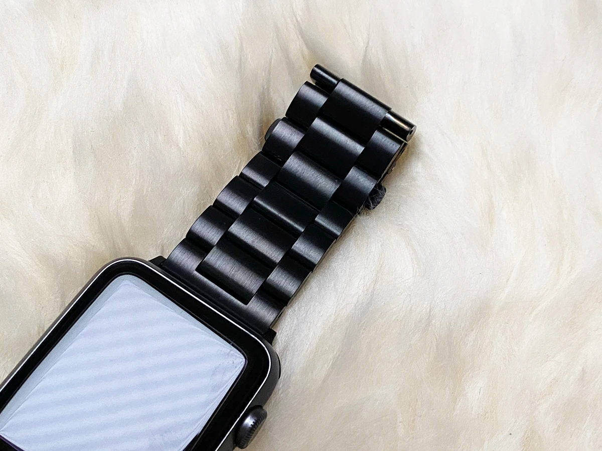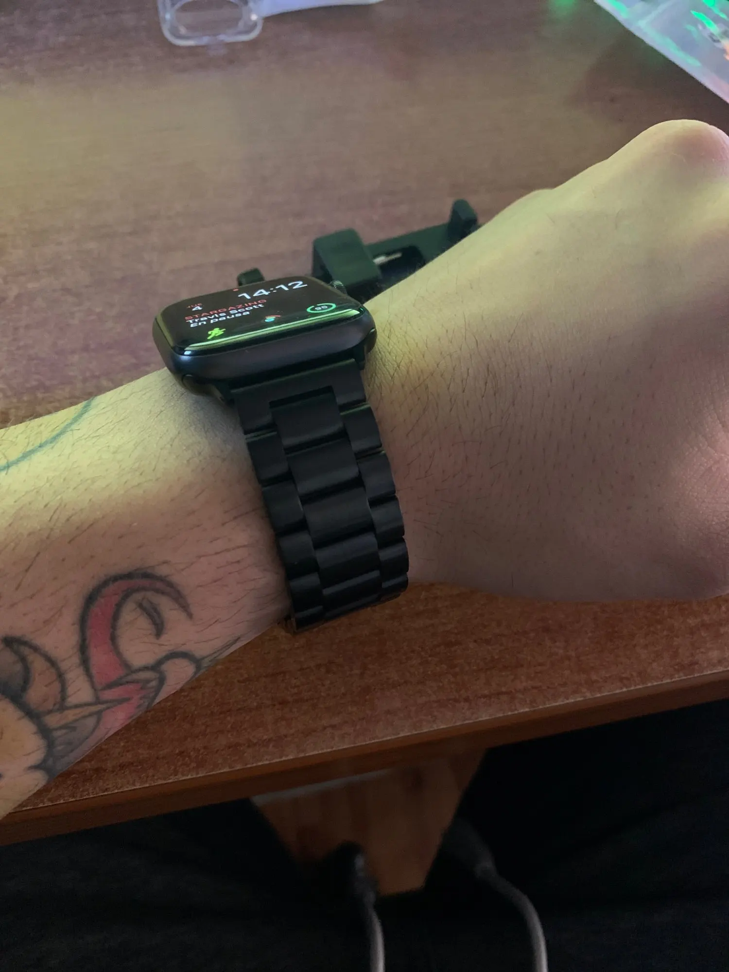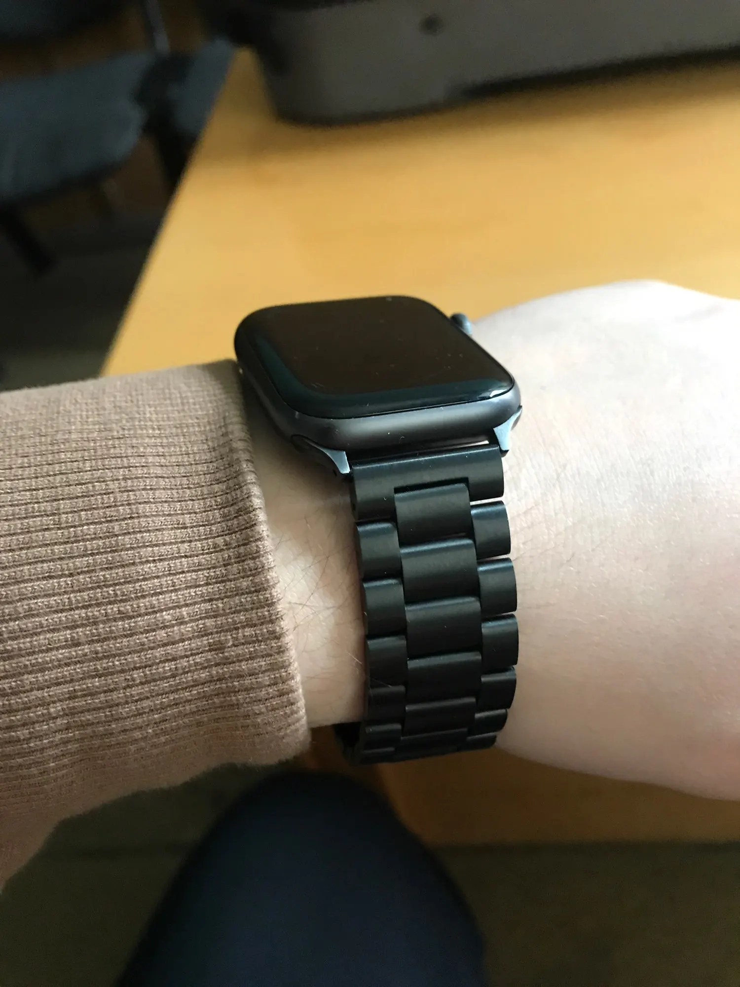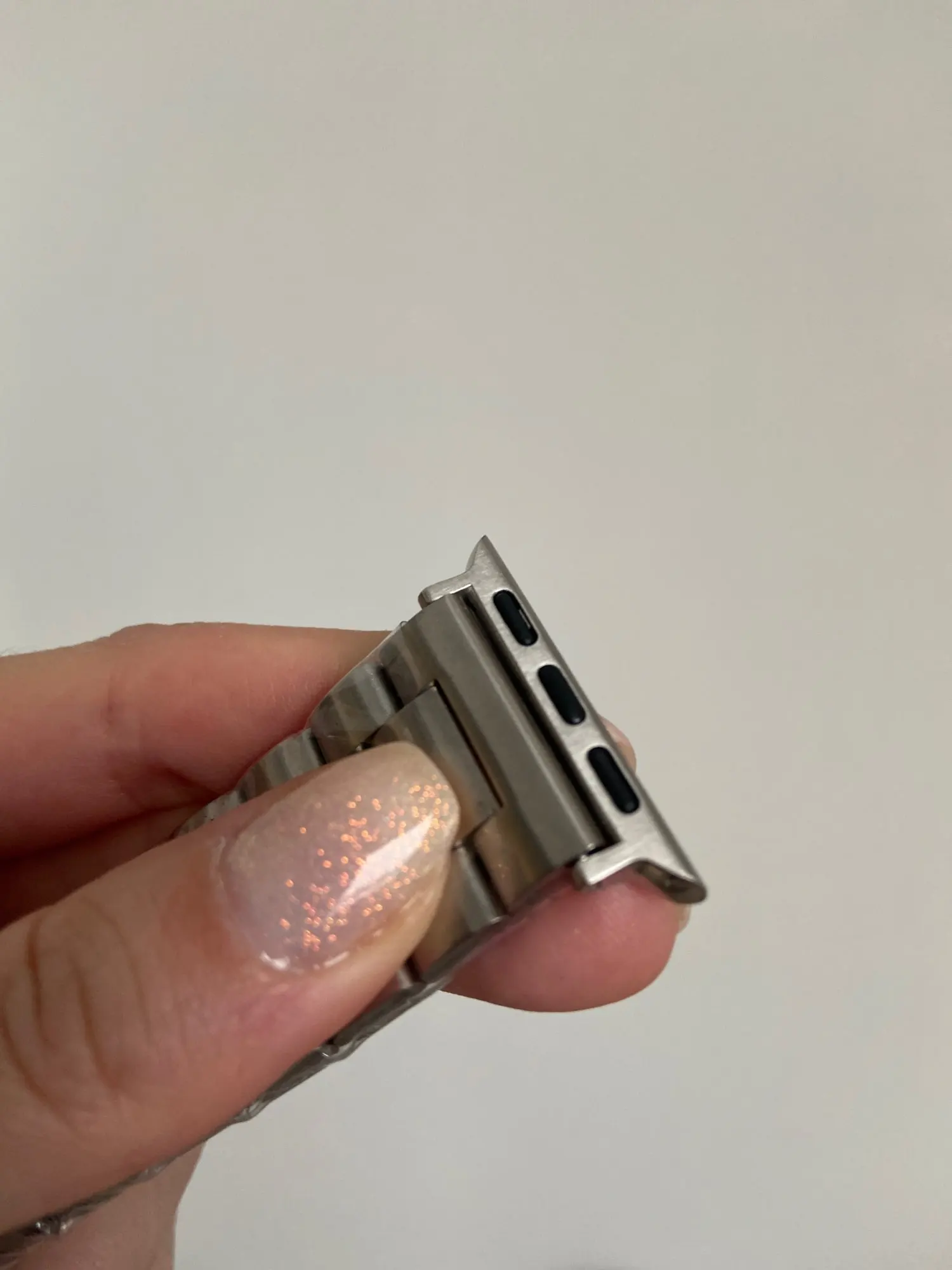 Браслет «запоминающийся» благодаря комплекту, который он приносит. У меня есть iWatch 6 40 мм, и мне пришлось удалить все ссылки, которые позволяют мне приспособиться к запястью. Они легко снимаются/надеваются, я нахожу это очень практичным, так как это позволяет решить проблемы с размером.