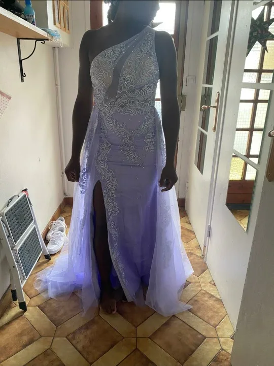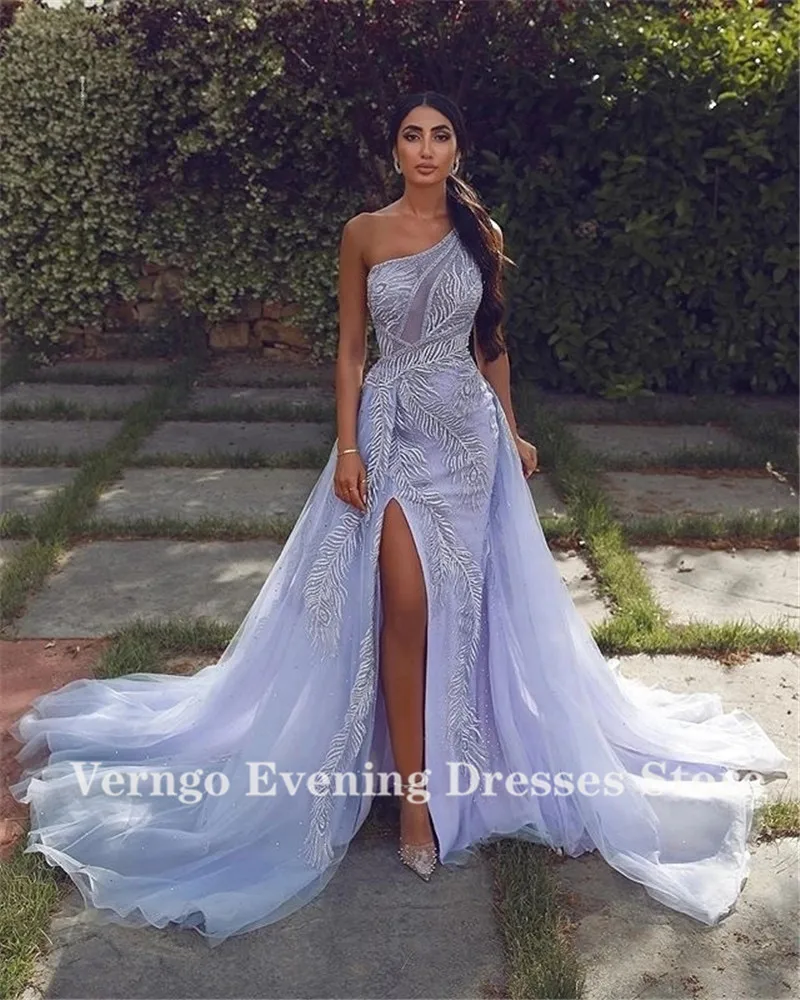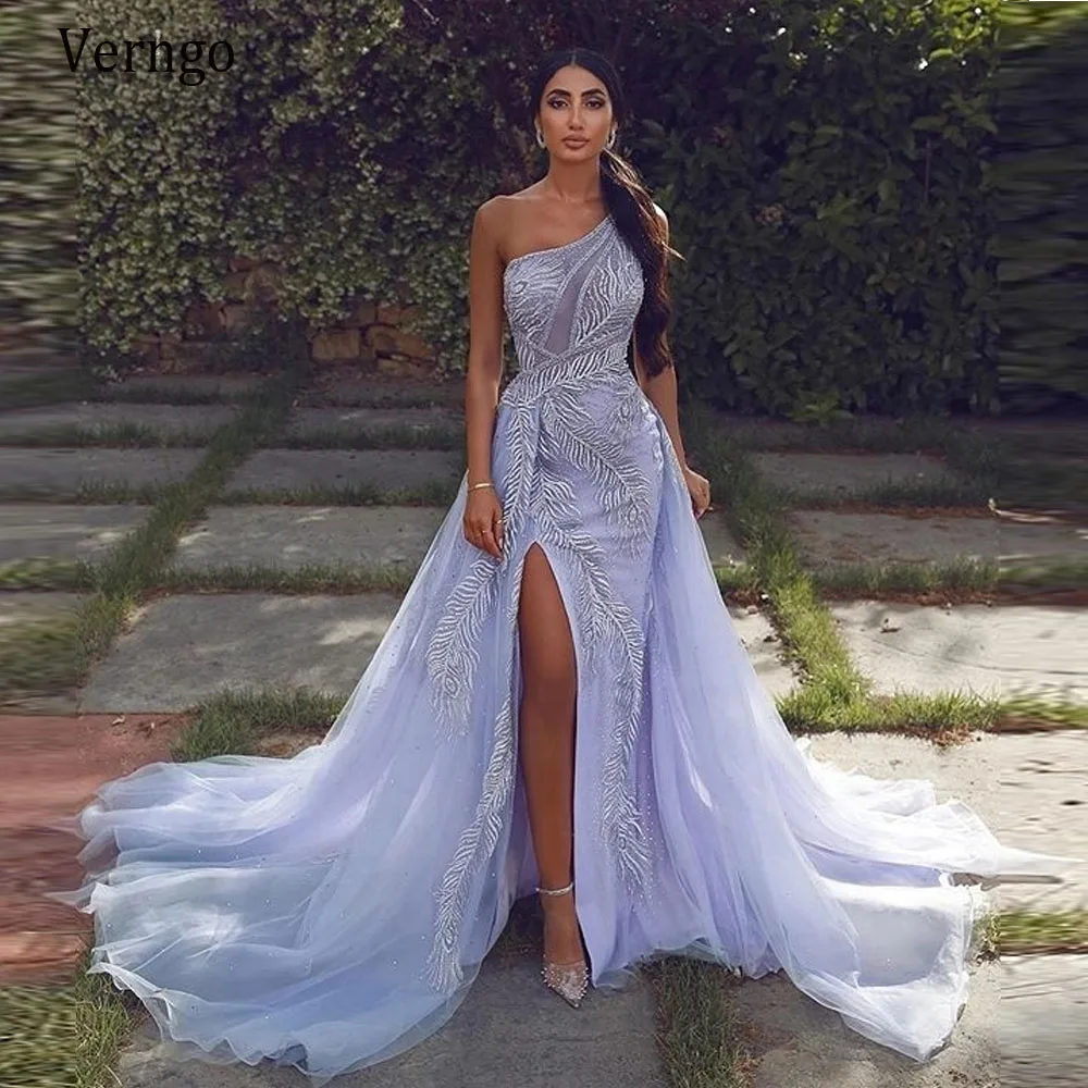 Verngo Лавандовые тюлевые Длинные вечерние платья 2021 на одно плечо кружевной узор фиолетовый элегантные платья для выпускного вечера Abendkleider