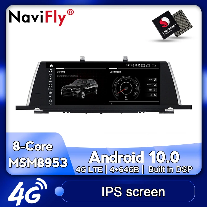 Автомобильный мультимедийный плеер NaviFly API29 на ОС Android 10 для BMW 5 серии GT F07 2009-2016, система CIC NBT, IPS, Qualcomm 4G LTE, 10,25 дюйма