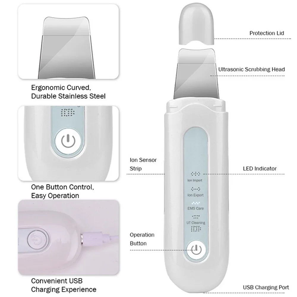 Ультразвуковой скребок для кожи, перезаряжаемый ионный глубокий очи...