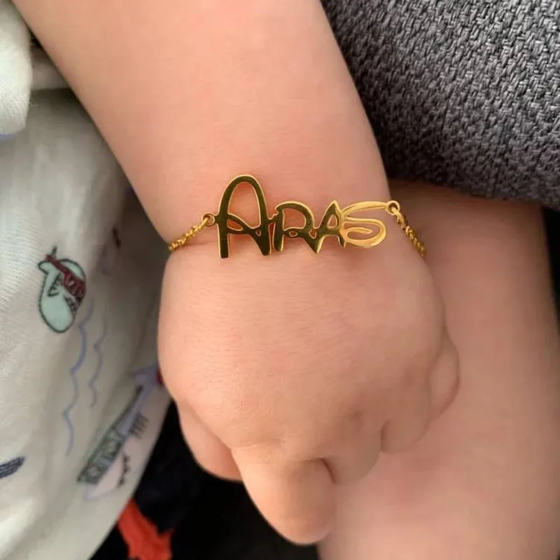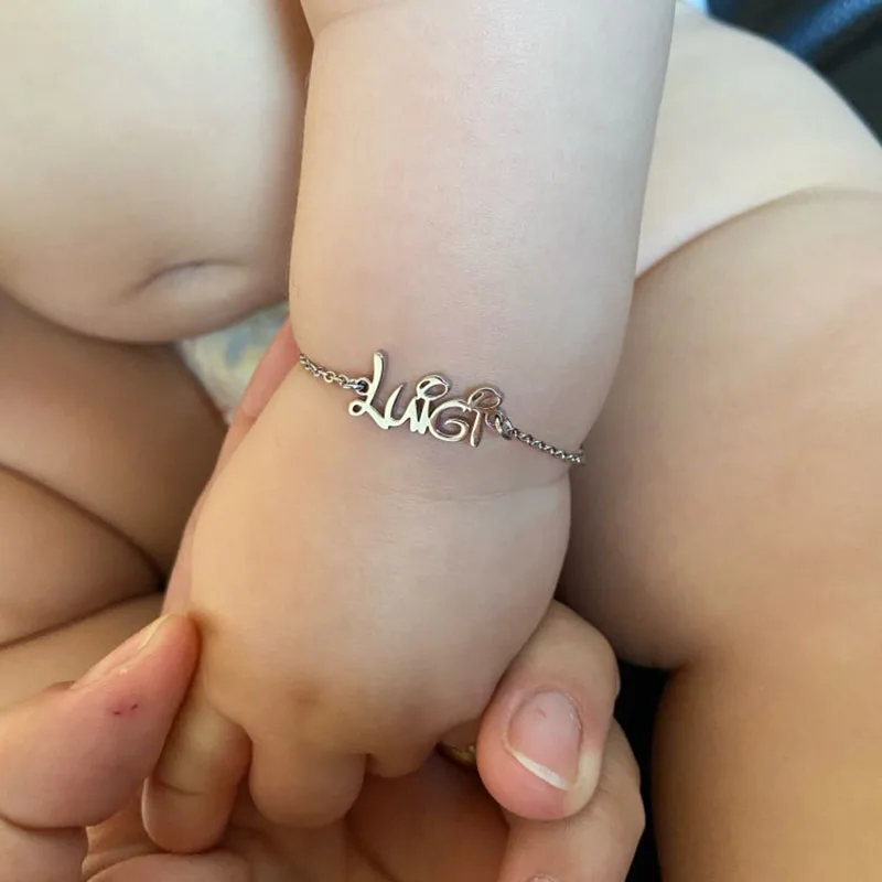 Браслеты с именем ребенка на заказ, женские модные браслеты из нерж...