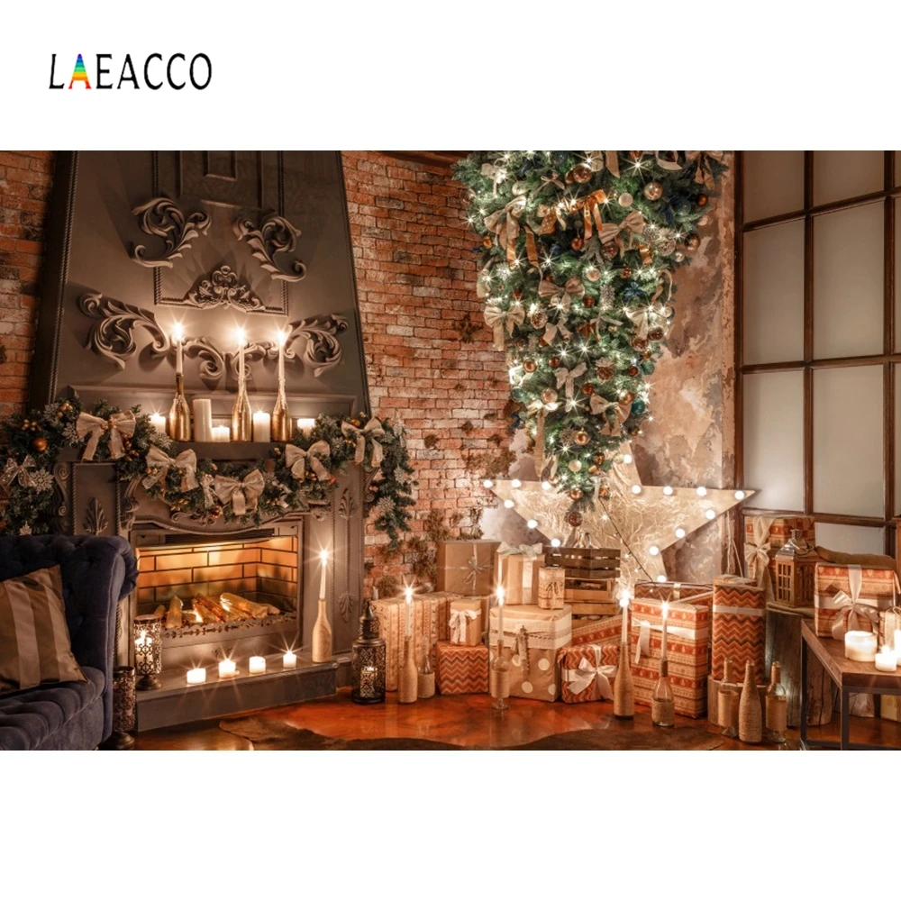 Laeacco деревянная стена камин стул Рождественская елка подарки фот...