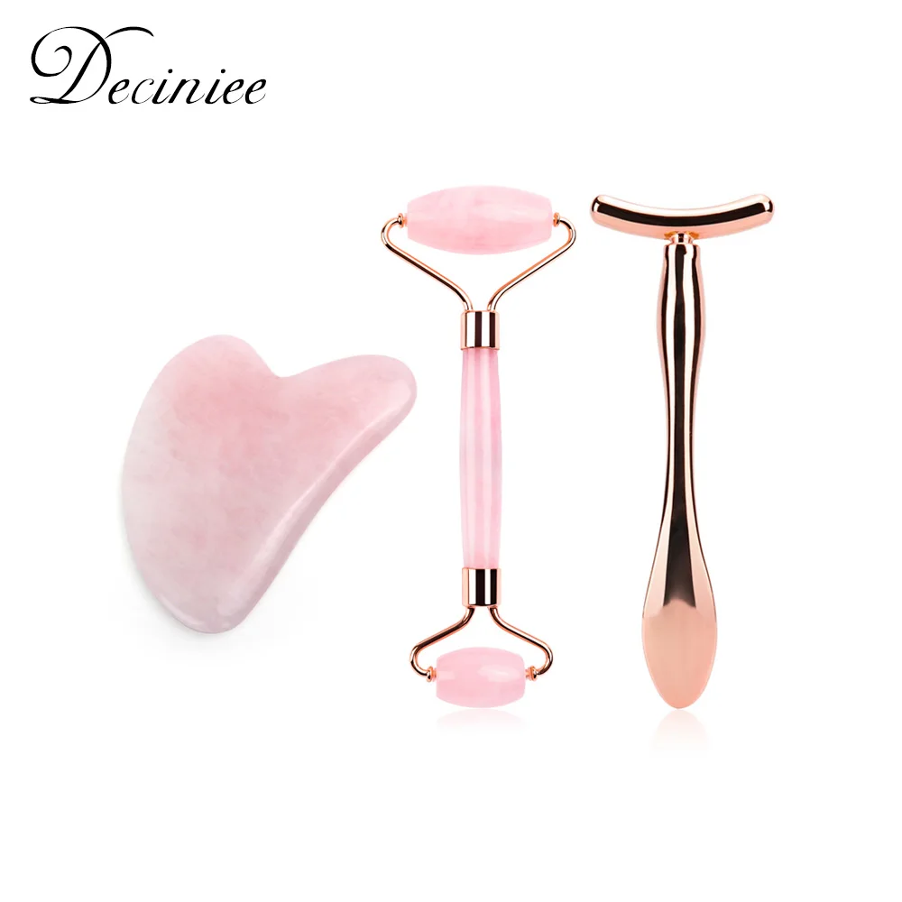 Розовый кварц нефритовый роликовый камень Gua sha соскабливающая доска набор Массажер для подтяжки лица массажер для массажа лица крем для глаз смешивающий шпатель Совок Инструменты