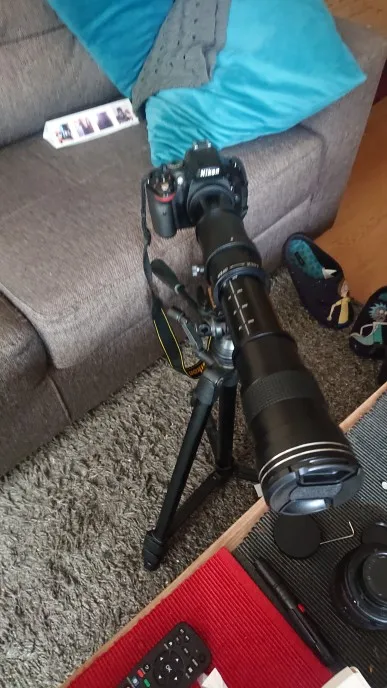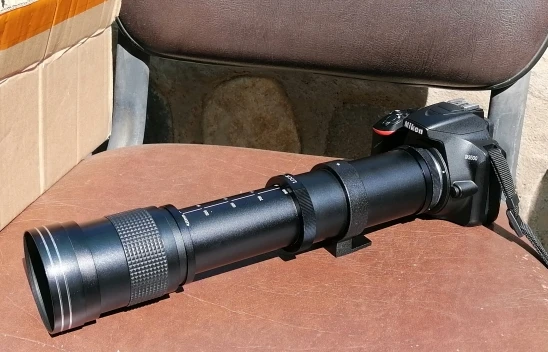 Суперрезультатов я , конечно, не ждал. Работает объектив нормально. Туговато кольцо наводки на резкость. Для нормальной съемки нужен прочный штатив. На моем при наводке все трясется. Снимать приходится с пультом дистанционного управления. Режим М только. Трубы на крыше сняты с расстояния метров 400-500, птички-с 6метров, наличник через грязноватый стеклопакет с 30метров. Надо приноровиться конечно. Конвертер тоже подошел нормально. Темновато конечно.В целом-на любителя. Буду пробовать снимать птичек в лесу после тренировки. Посылки пришли сразу 2 в одной упаковке, вместе с рельсой. Меньше чем за месяц. Упаковано хорошо, ничего не помялось. Продавец положил салфетку из микрофибры и карандаш для чистки оптики. Так что ему полный зачет и уважение.!