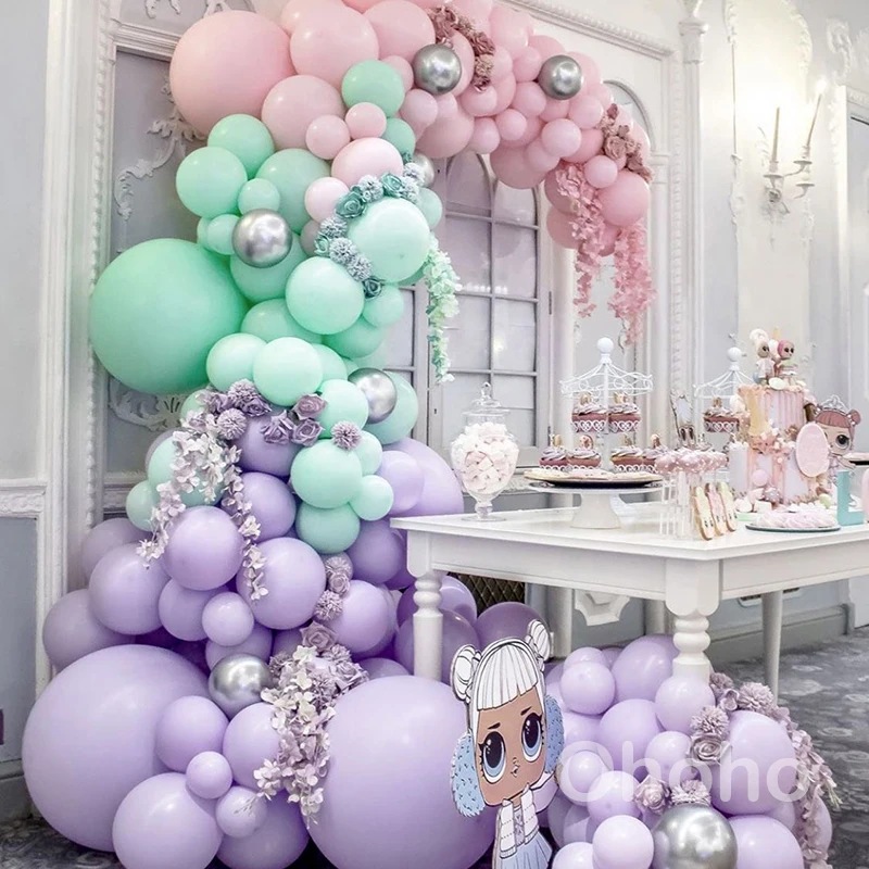Охохо розовый зеленый фиолетовый Пастель Макарон воздушные шары гирлянда арочный Комплект Baby Shower День рождения Декор для взрослых свадебный фон