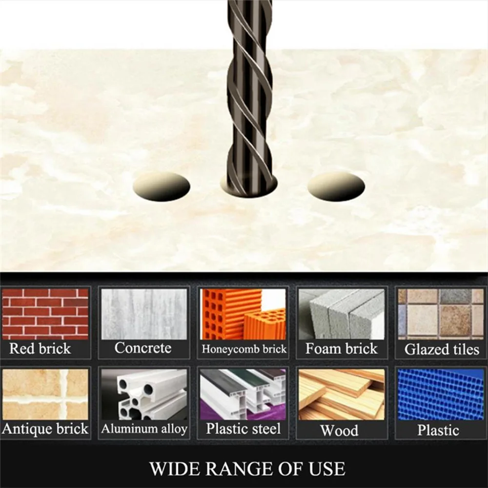 ● Подходит для «сухих сверл»: железо, медь, алюминиевый сплав, дерево, пластик, застекленный кирпич, античный кирпич, бетон, пузырьковый кирпич, красный кирпич