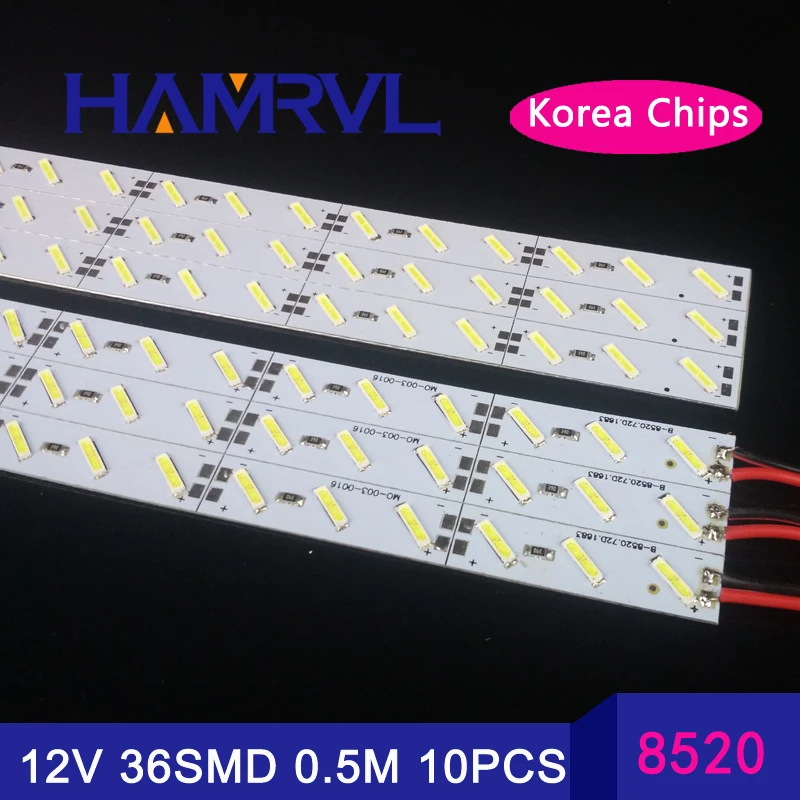 Барсветильник лампы, 10 шт., IP20, 0,5 м, 5050, 5630, двойные, 7020, 8520, 12 В, 20 дюймов, 12 мм, жесткие светодиодные ленты, белые, теплые, RGB, для кухонного шкафа