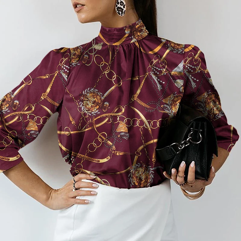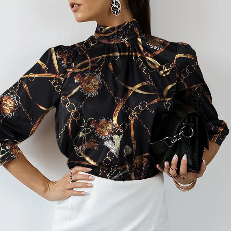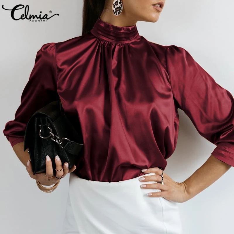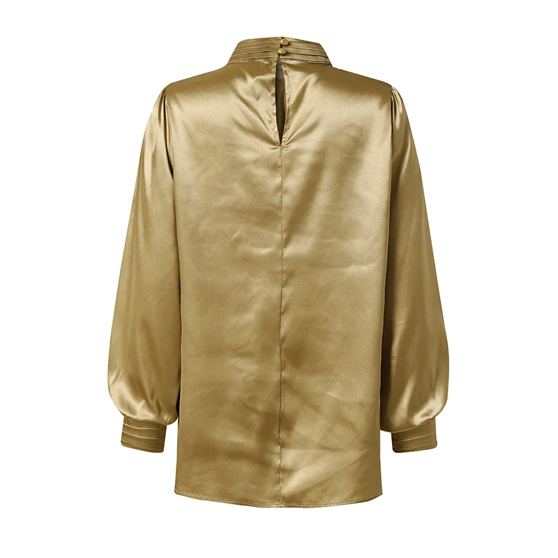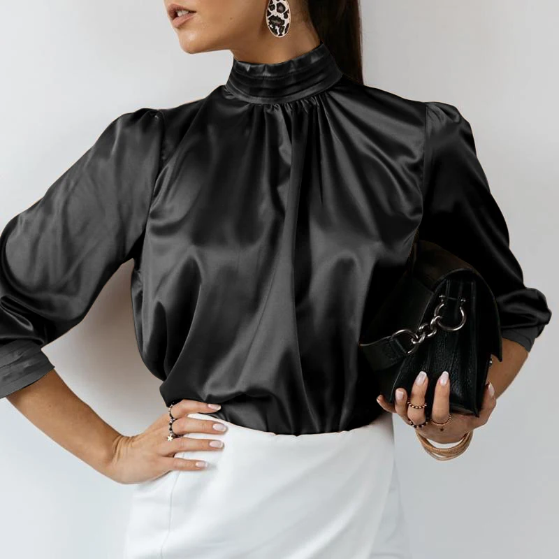 Женская атласная блузка, с высоким воротником, осенняя, 2021