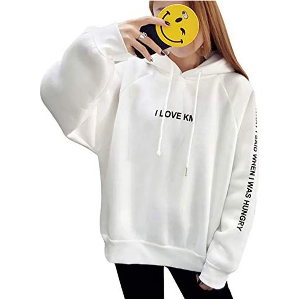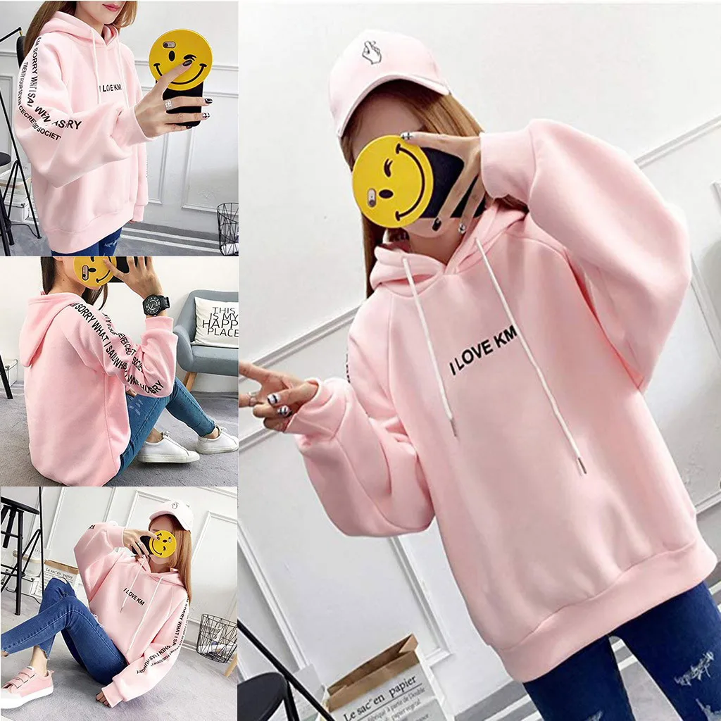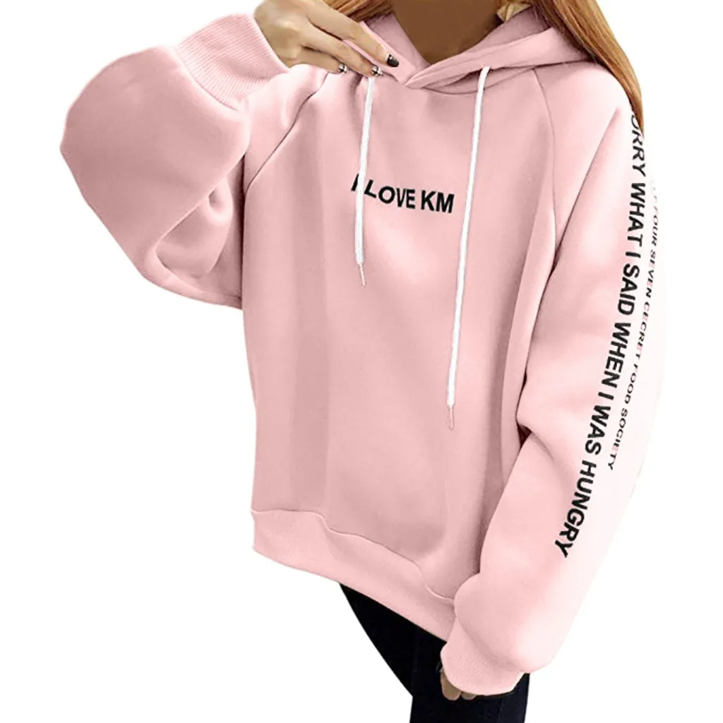 Женский Повседневный пуловер с капюшоном с длинным рукавом и буквенным принтом, свободная утолщенная блузка, толстовка с капюшоном