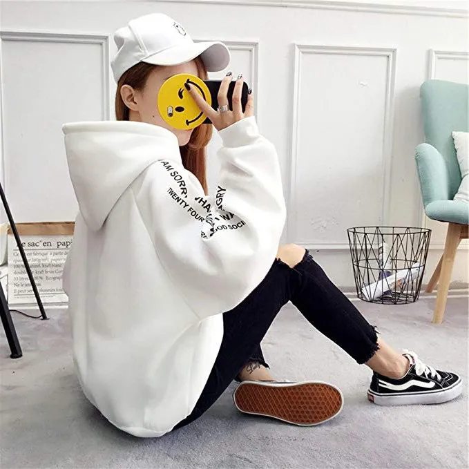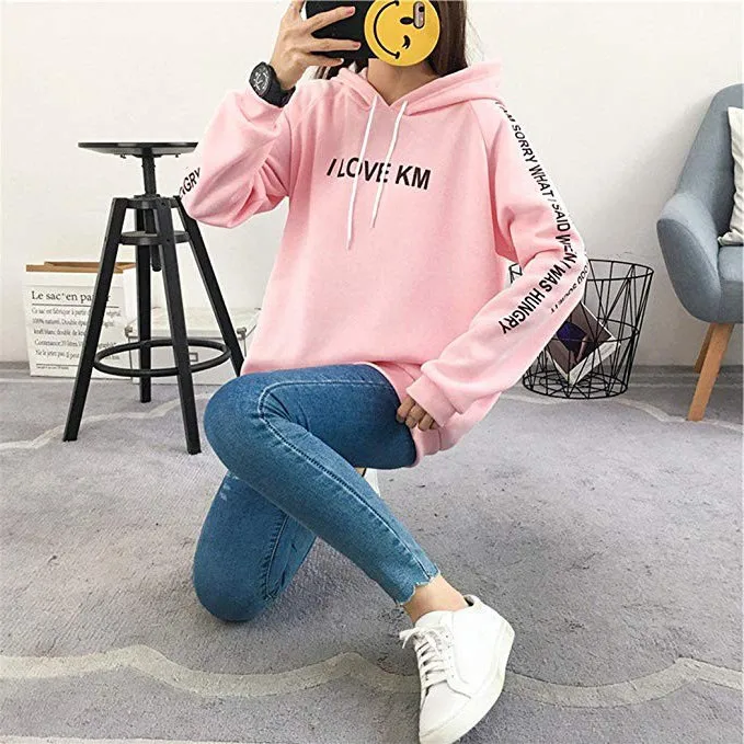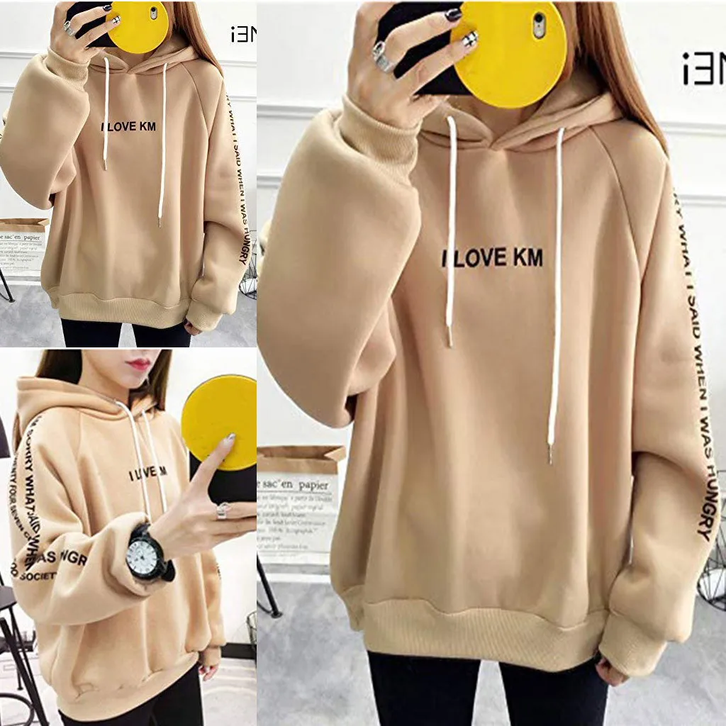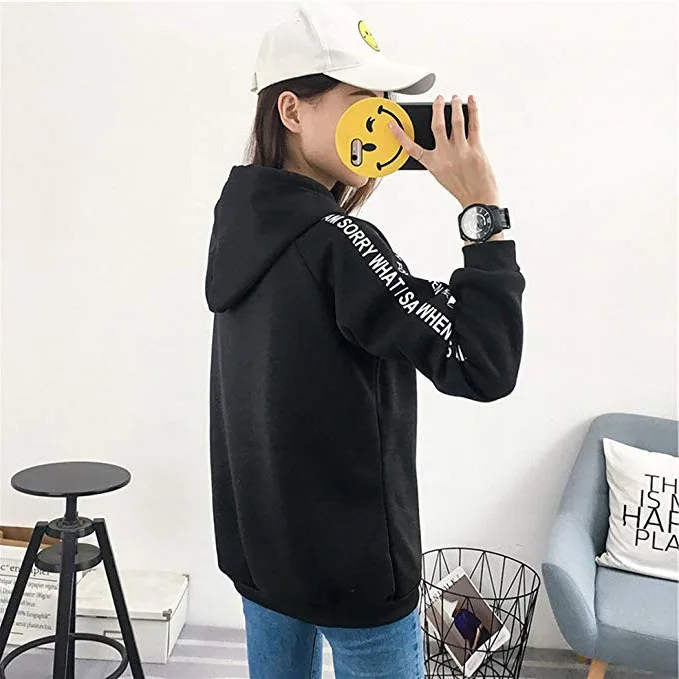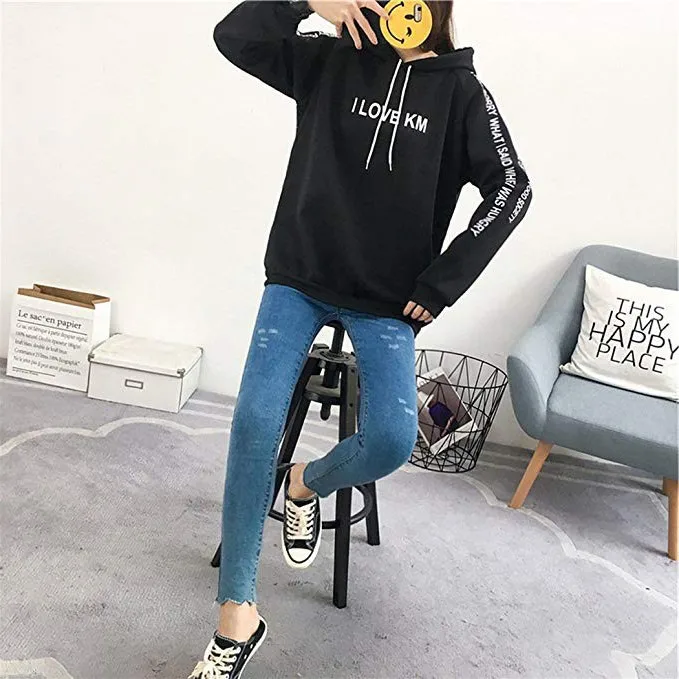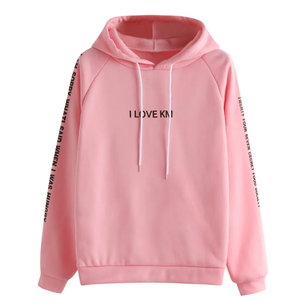 Женский Повседневный пуловер с капюшоном с длинным рукавом и буквенным принтом, свободная утолщенная блузка, толстовка с капюшоном