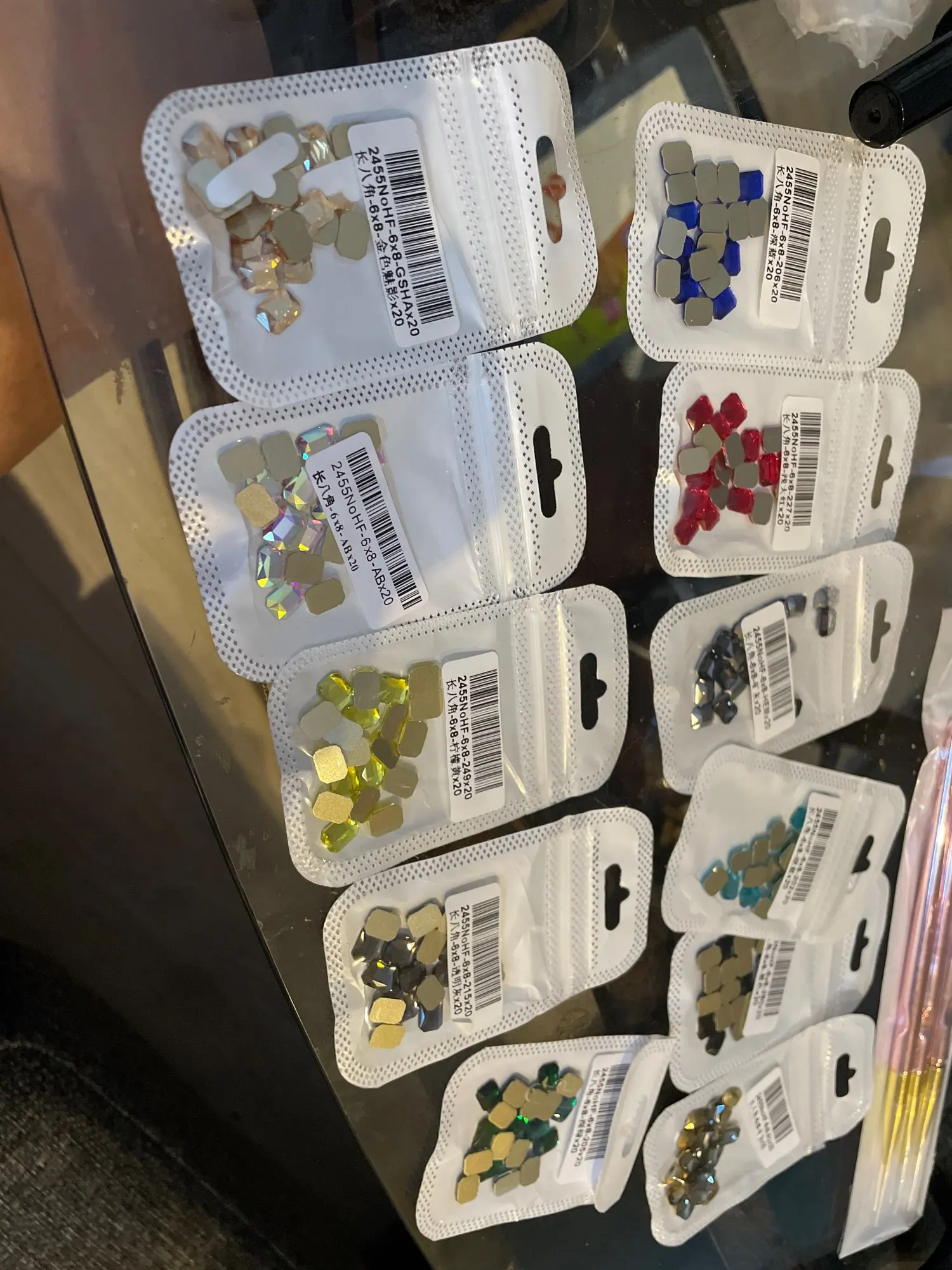 остразы просто офигенные! якро переливаются,крупные,обязательно опробую как придет клей. по доставке:продавец отправил товар быстро,товар отслеживался все время,так же и доставка не подкачала,прибыли быстренько. товар и продавца рекоменду,обязательно дополню отзыв как их опробую.