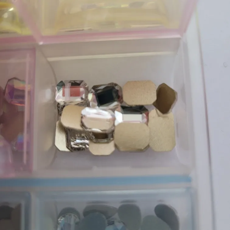 Качество материала хорошо выглядит так же, как на фотографии, его яркость очень хорошая и весит очень легкий, очень удобно носить в качестве украшения ногтей