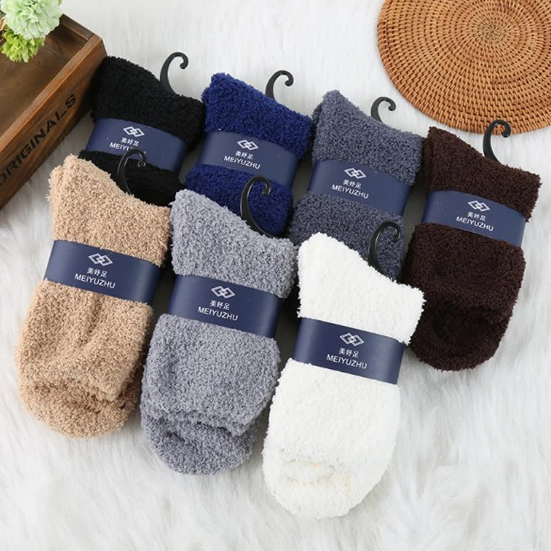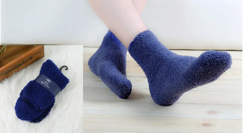 1 пара милых однотонных мягких женских пушистых носков ярких цветов, махровые носки-тапочки для девочек, теплые домашние зимние Бархатные носки кораллового цвета