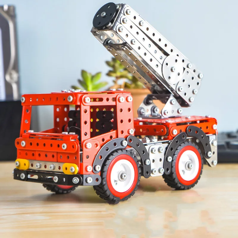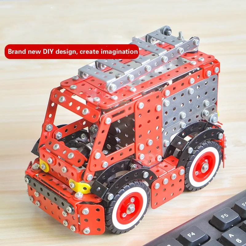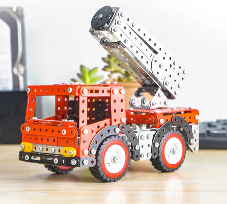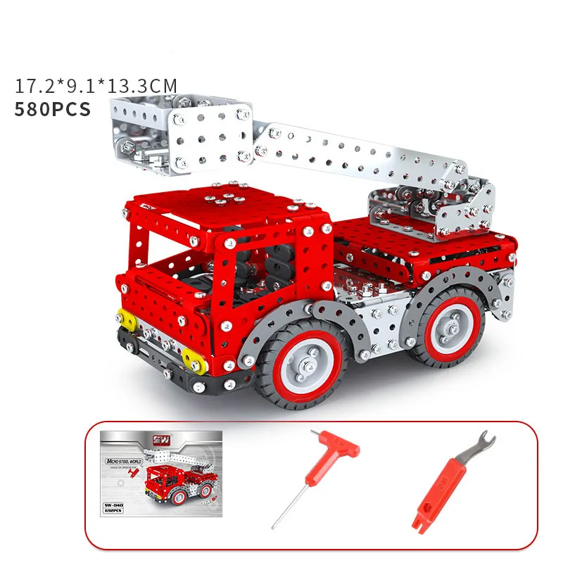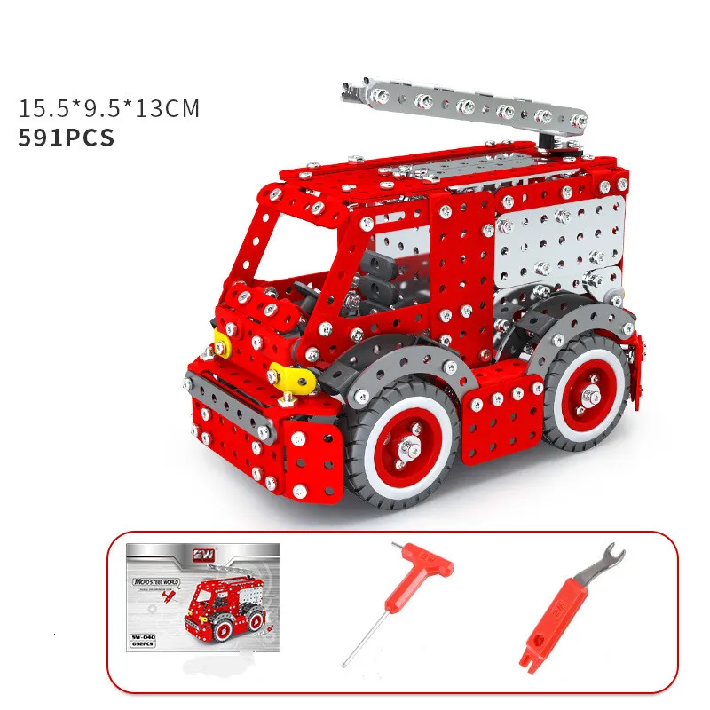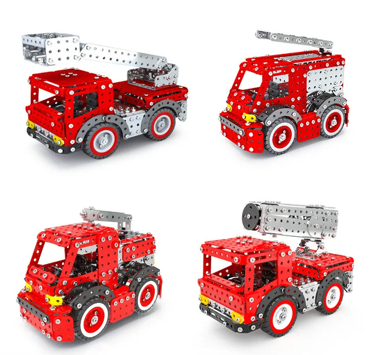 2021 "сделай сам", игрушка для мальчика, интеллектуальный красный пожарный автомобиль, металлический пожарный автомобиль, Набор комбинированных деталей, собранная модель из сплава, игрушка