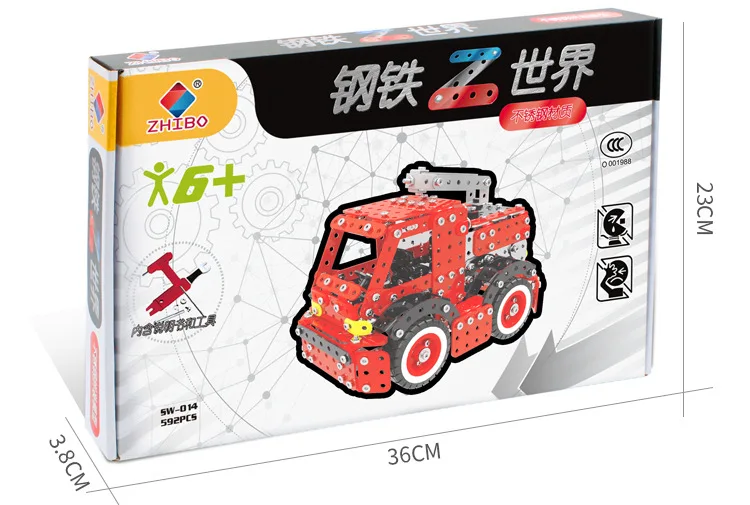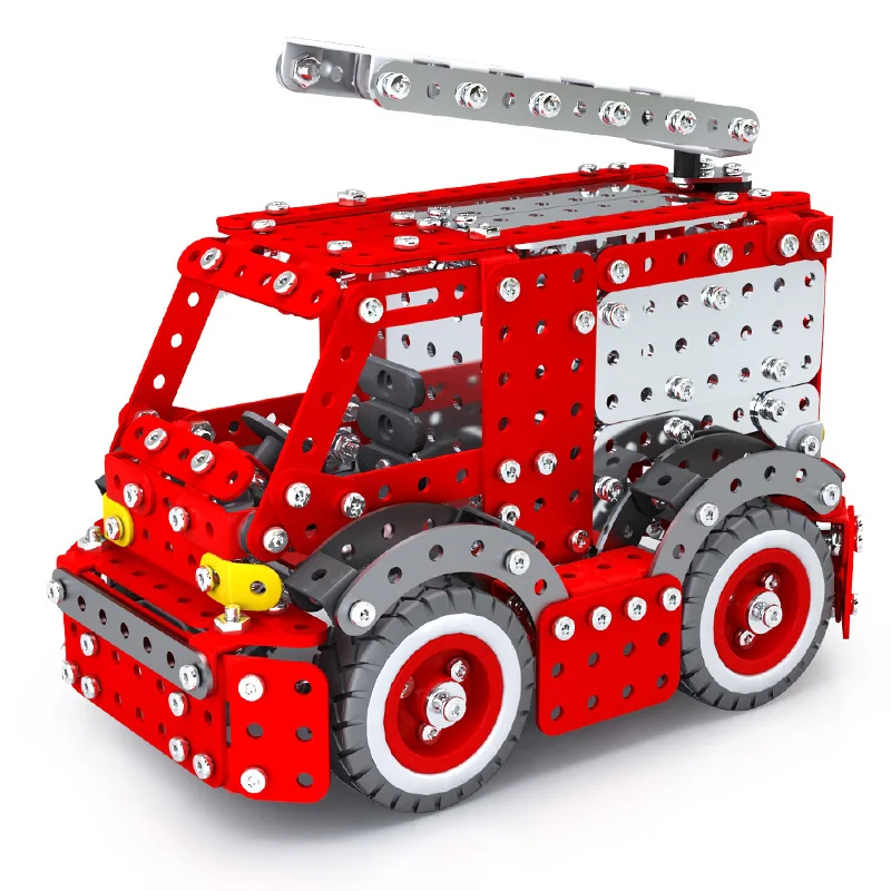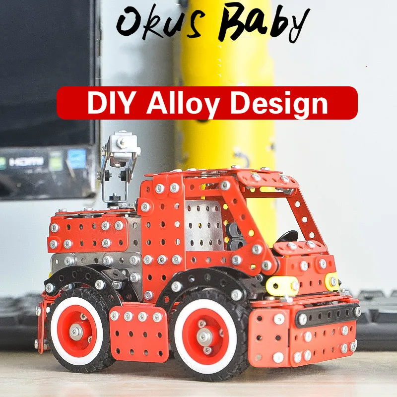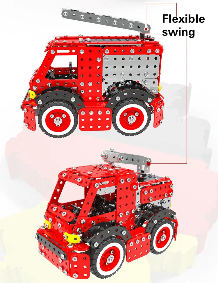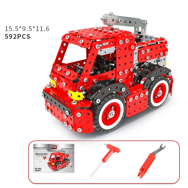 2021 "сделай сам", игрушка для мальчика, интеллектуальный красный пожарный автомобиль, металлический пожарный автомобиль, Набор комбинированных деталей, собранная модель из сплава, игрушка