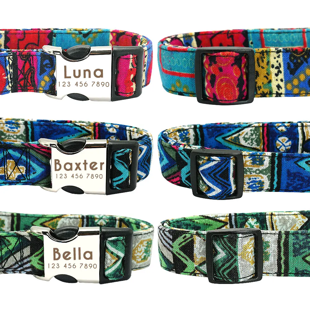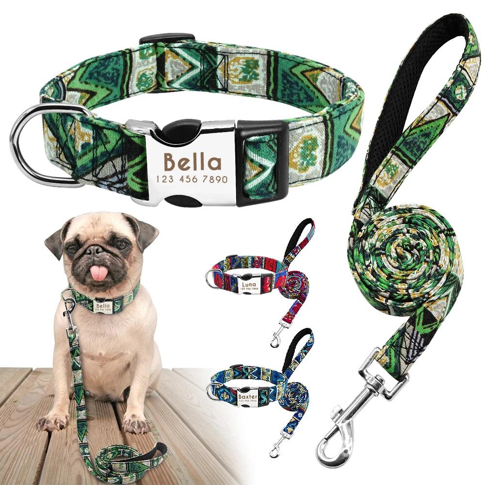 Ошейник для собак с модным принтом, персонализированный поводок, гравировка имени, поводок, малый, средний и большой размер