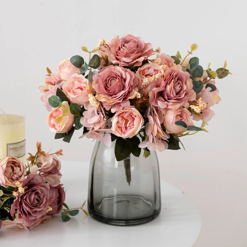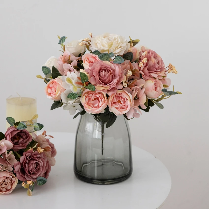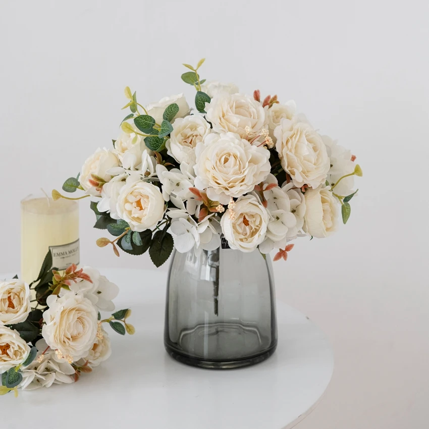 Искусственные цветы, пионы, гортензии, розы, свадебные, рождественские украшения для дома, сделай сам, декор для гостиной