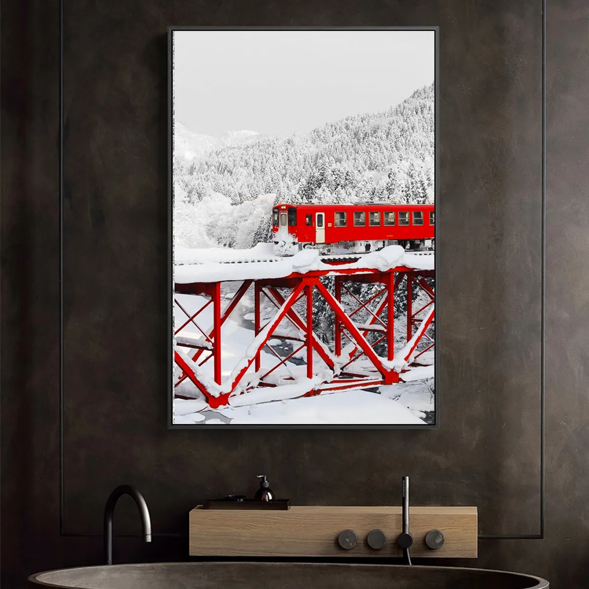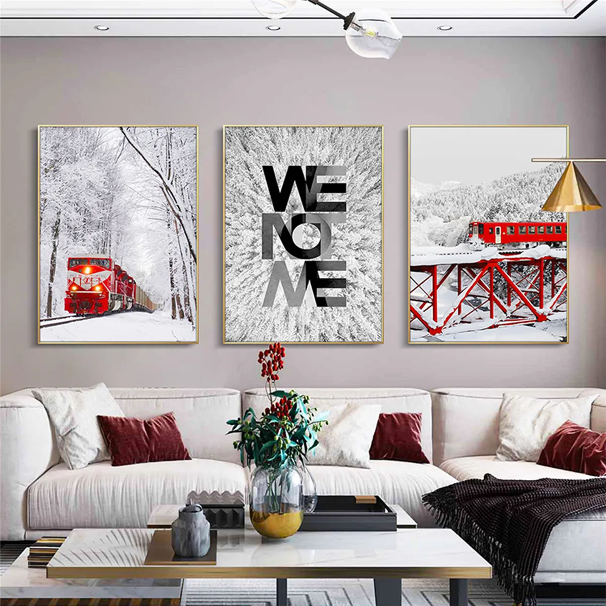 Новодический красный поезд, белый Снежный пейзаж, плакат, холст, печать, живопись, настенное искусство, гостиная, украшение для дома