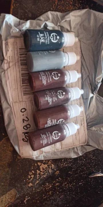 Отвратительное качество ! Ужасные пигменты ! Испачканные крышки на флаконах .Посылка шла 54 дня !!!! Никому не советую этого продавца , пустая трата денег .