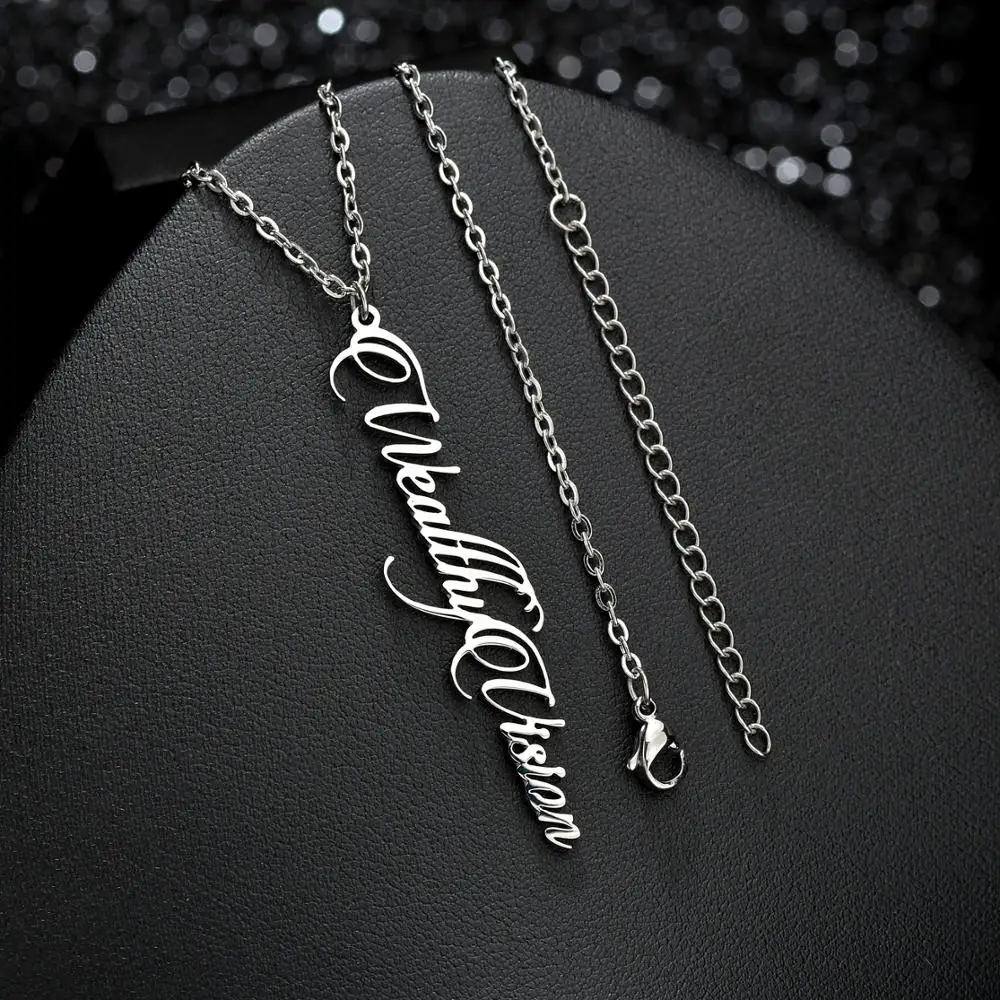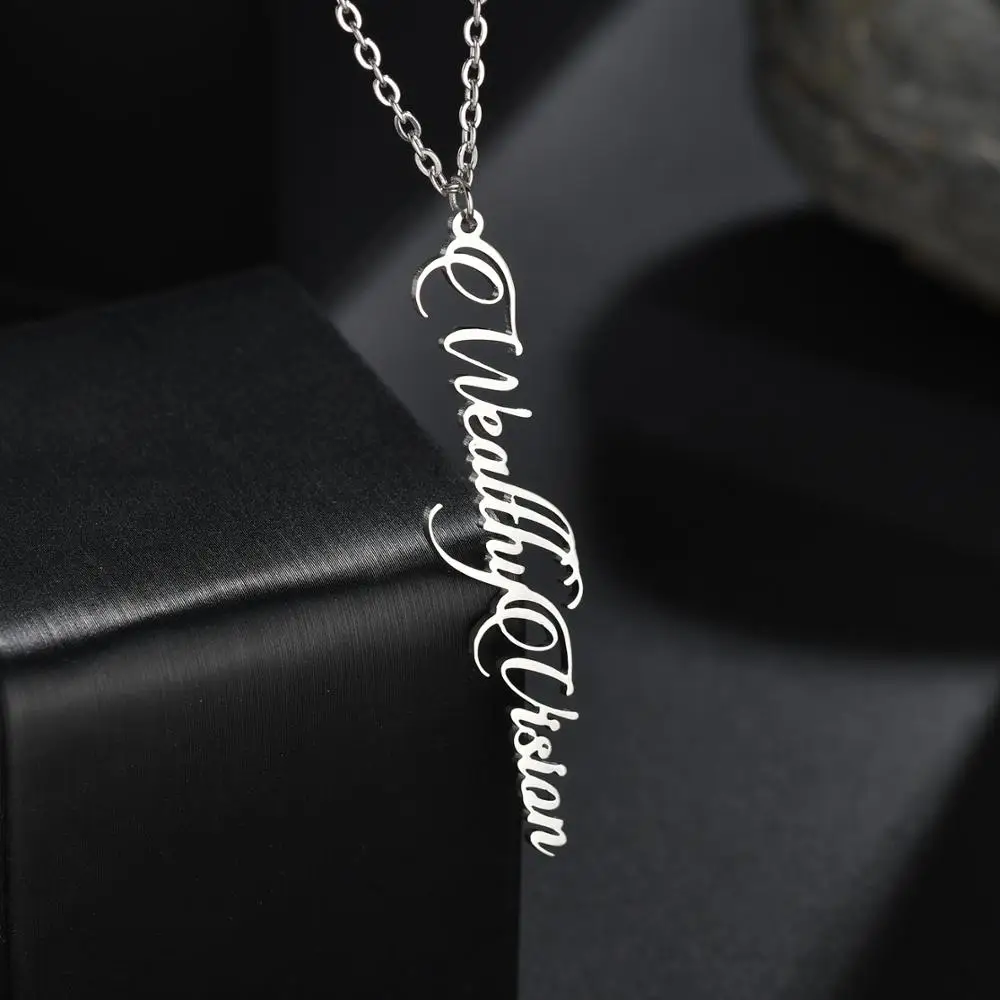 Название:Новое индивидуальное ожерелье из нержавеющей стали для женщин, индивидуальная Вертикальная подвеска с надписью, подарок