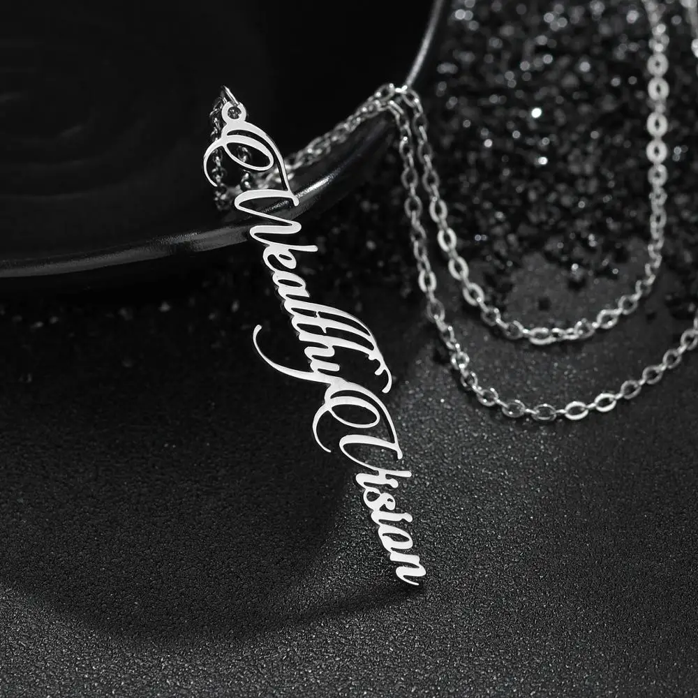 Новое индивидуальное ожерелье из нержавеющей стали для женщин, индивидуальная Вертикальная подвеска с надписью, подарок