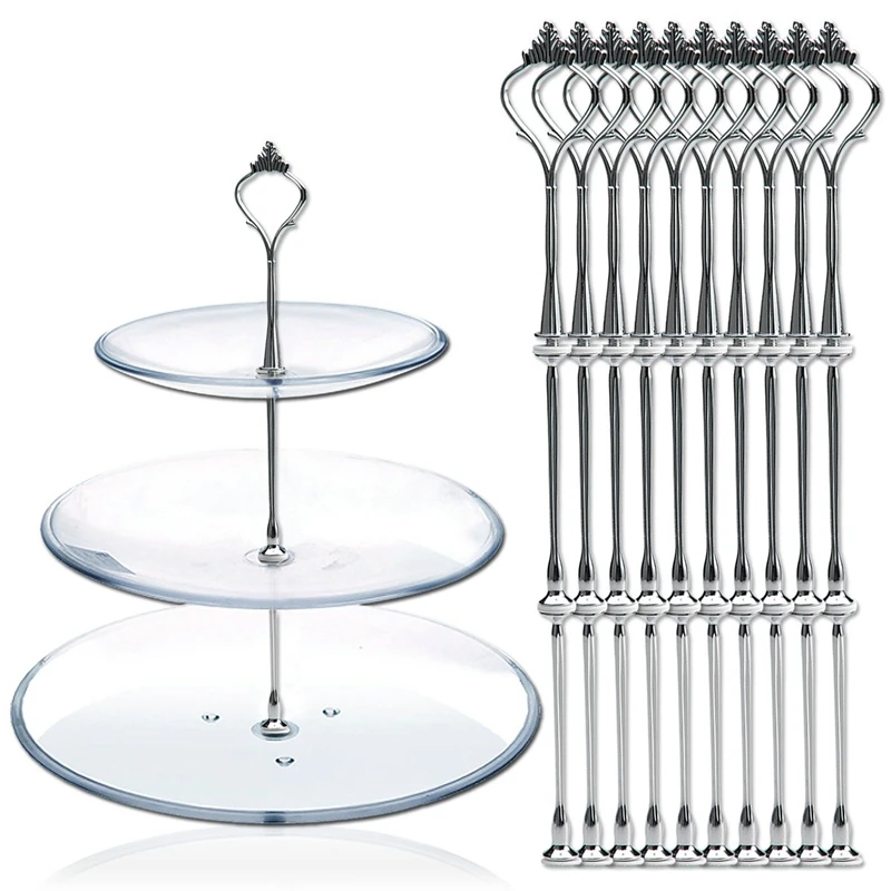 10 x комплектов, 2 или 3 уровня, подставка для торта, фитинги, серебряные подставки, Новинка