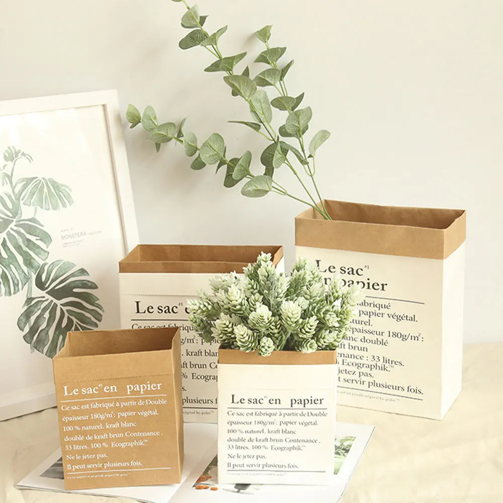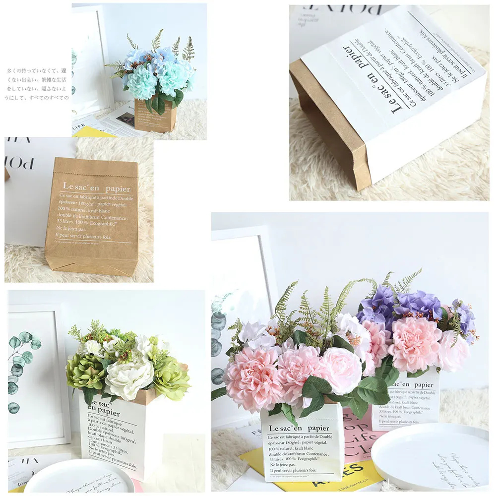 Пакет из крафт-бумаги сделай сам, цветочный горшок, ваза с искусственными цветами, пакет из крафт-бумаги, свадебное хранение, домашний декор, корзина для сушеных растений