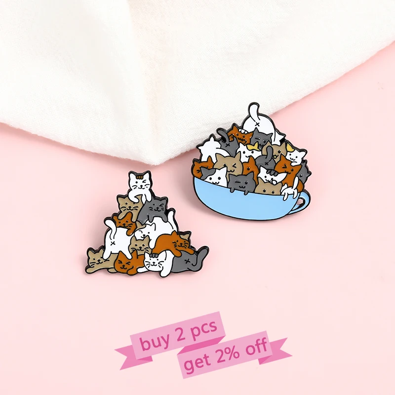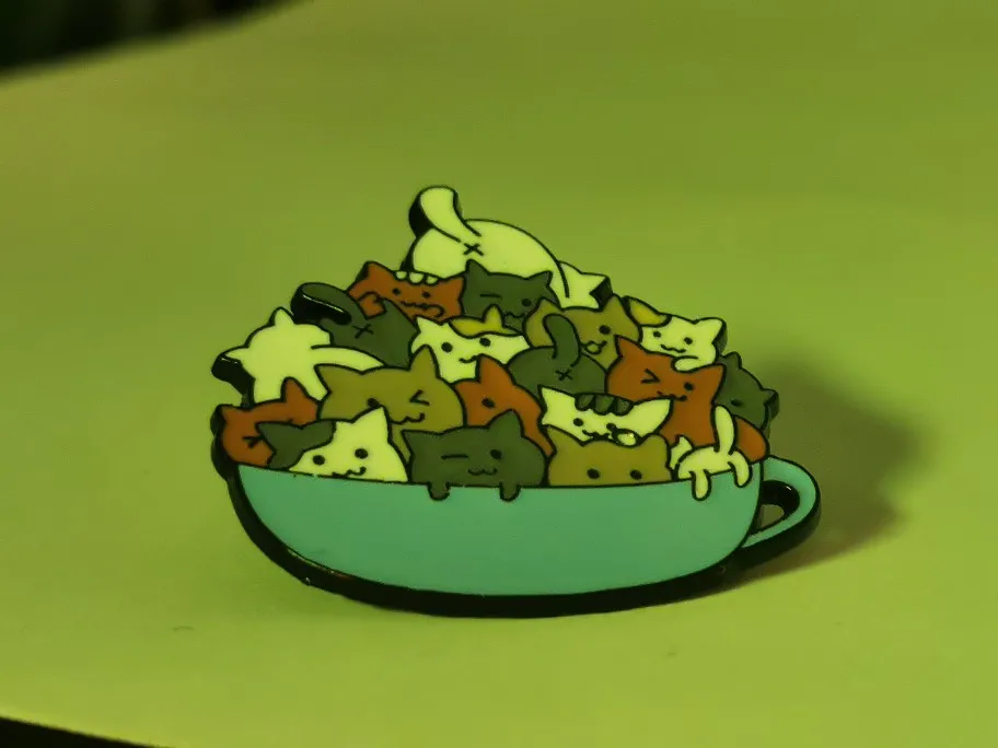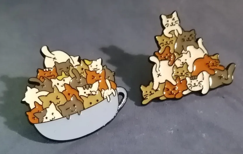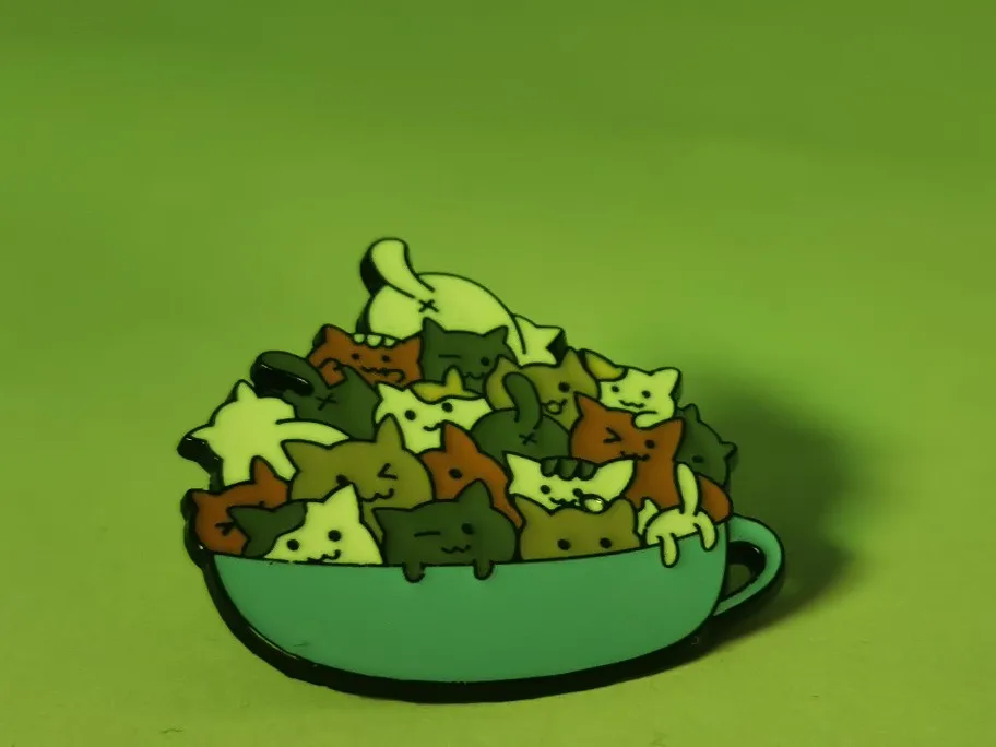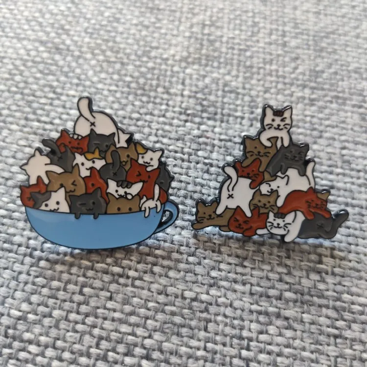 Значок на лацкан с изображением кошки, кота, кофейной чашки, кружки, мешочек для брошек