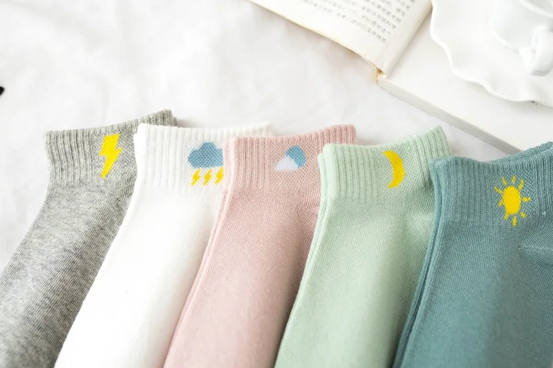 Носки женские хлопковые с принтом маргаритки, 5 пар, набор тапочек