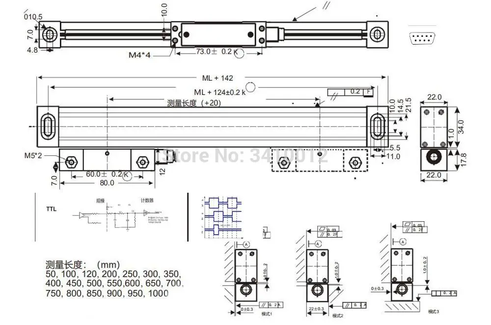 Useful dimensions optical rulerX Y Z axis travel length 50mm to 1000mm