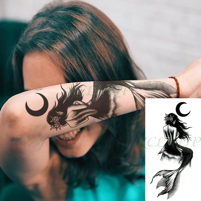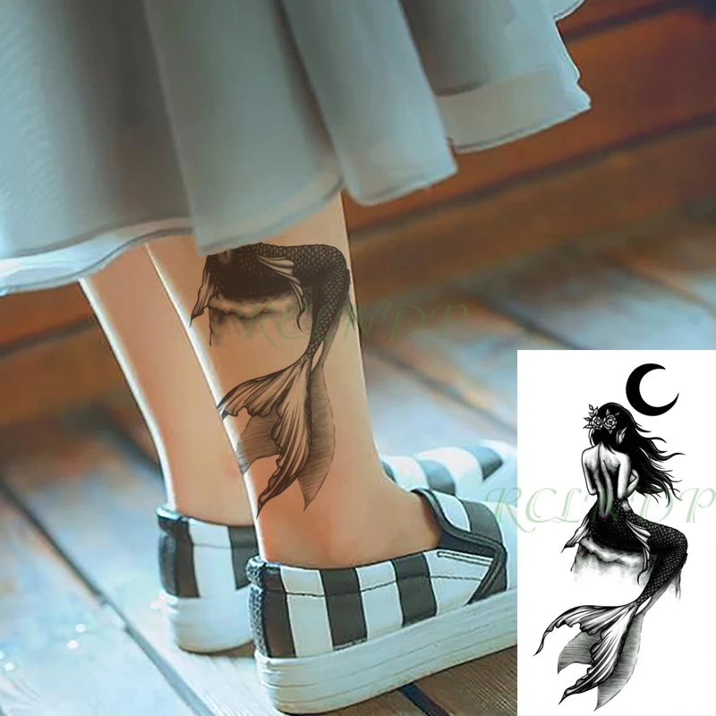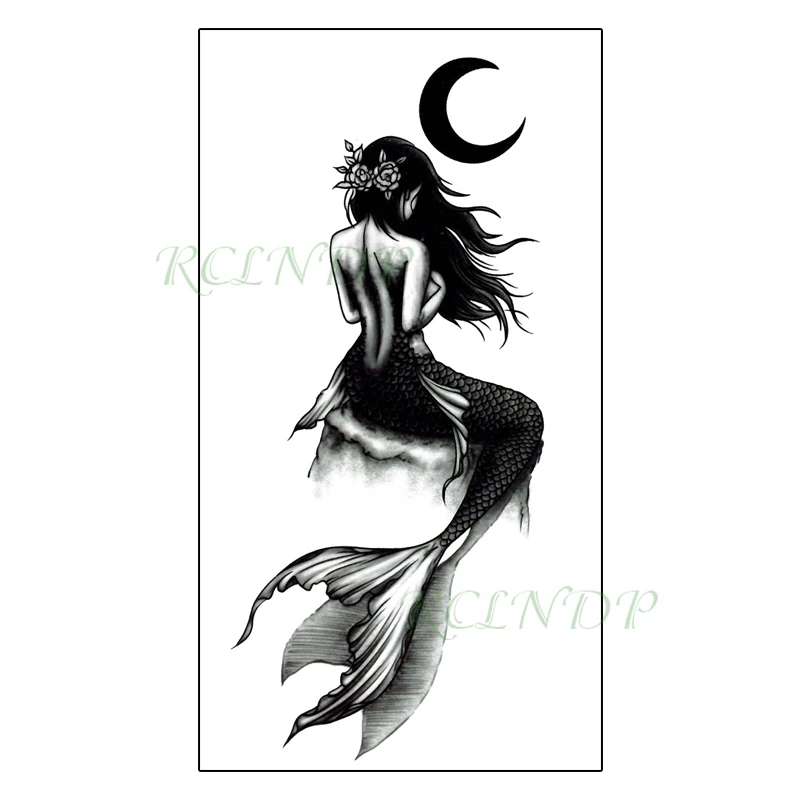 Водонепроницаемый Временные татуировки стикер Русалка сексуальные длинные волосы девушка Луна поддельные татуировки флэш рука нога татуировка для девушек женщин мужчин