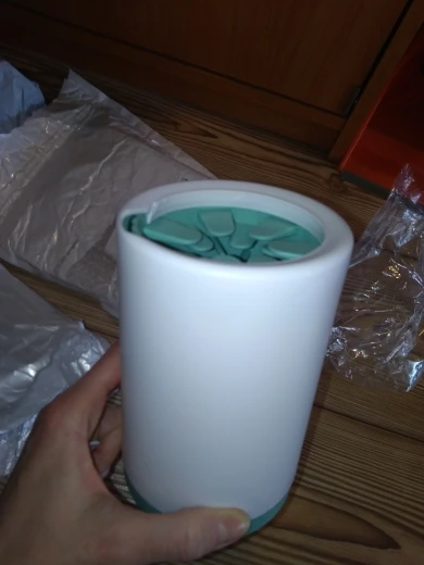 Классная лапомойка. Доехала быстро трэк отслеживался. Все прекрасно работает. но Самая большая для моего коржика кардигана оказалась немного маловата, а ему 3,5 месяца. С лапой внутри проворачиваться с трудом.