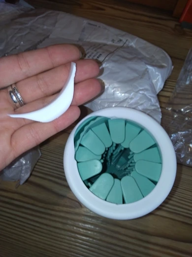 Лапомойка пришла достаточно быстро, целая, без трещин и царапин. Легко разбирается, все можно помыть и собрать обратно! Очень мягкий и приятный силикон. Не как сопли, упругий и мягкий! Лапомойка не большая, хотелось бы, конечно, побольше... Проверю в деле - дополню отзыв! )