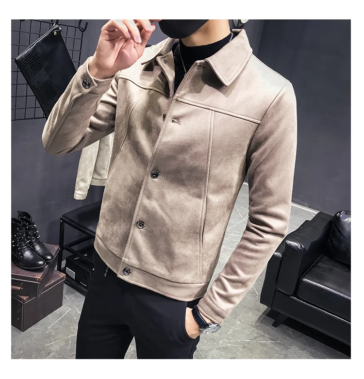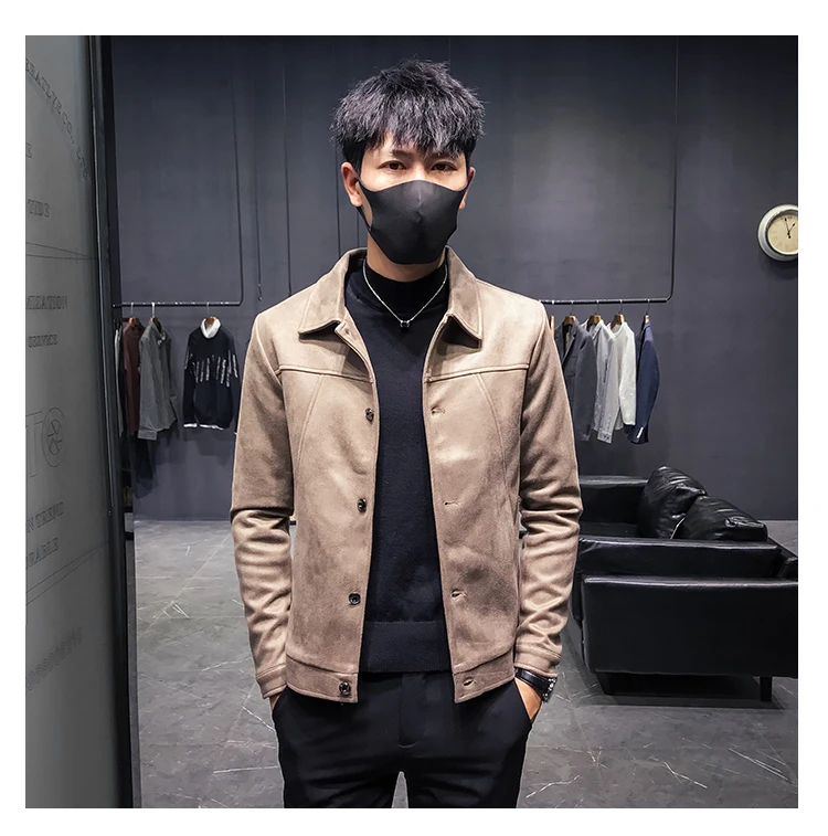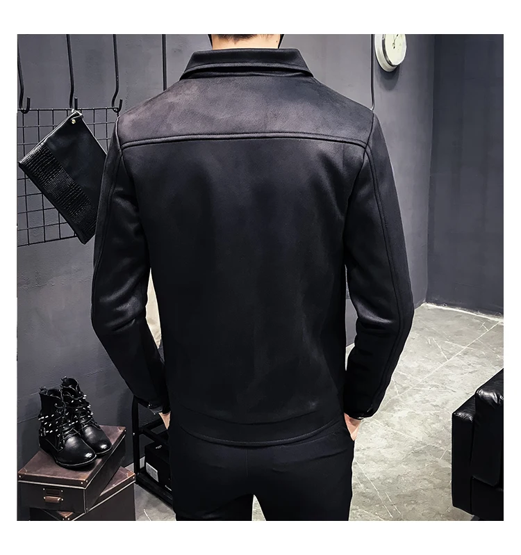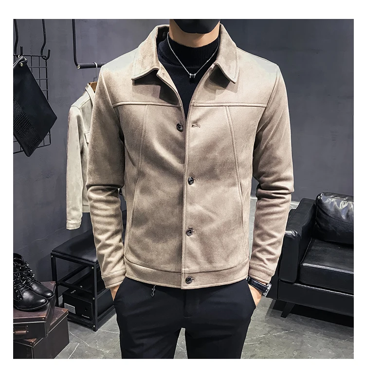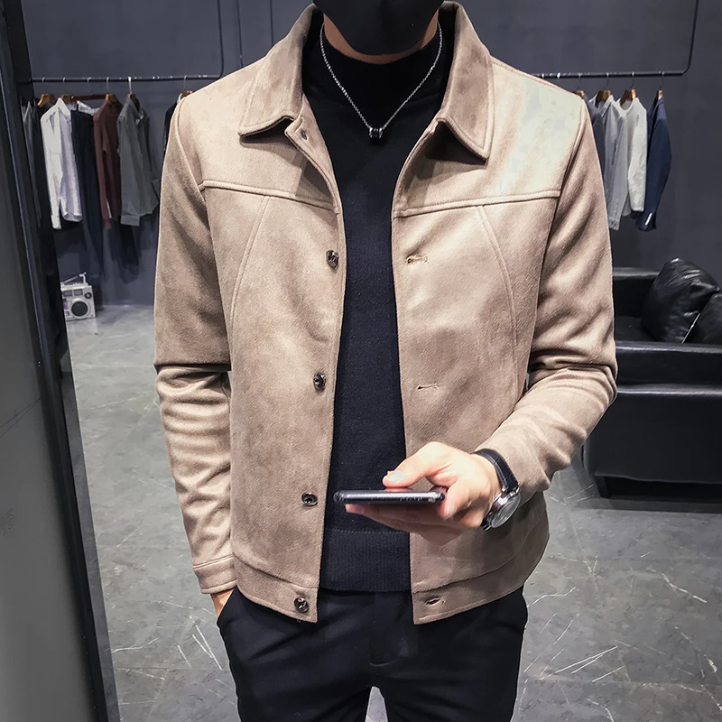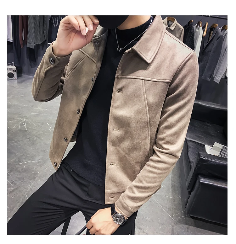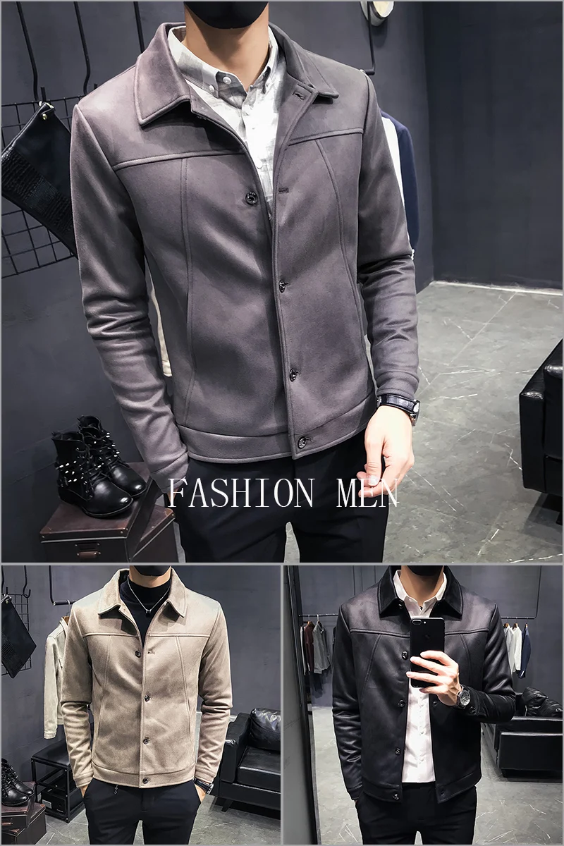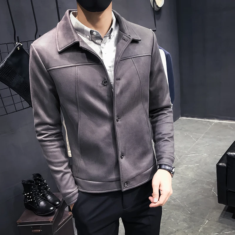 Стильные замшевые куртки мужские осенние пальто хаки винтажные мужские кожаные куртки бомбер черный корейский стиль Мужская одежда серый