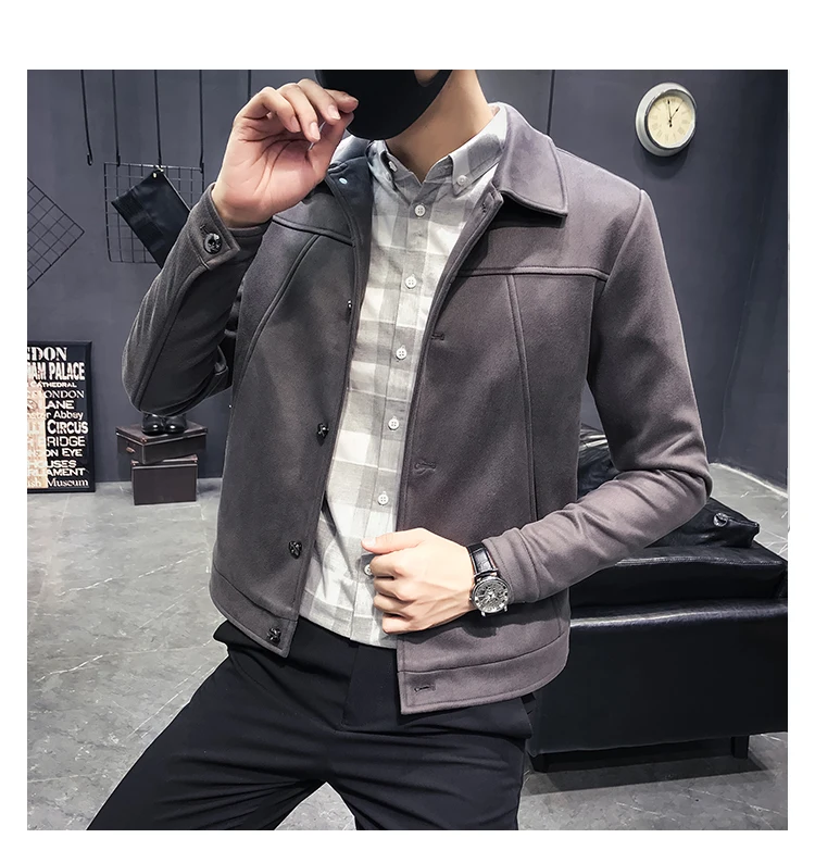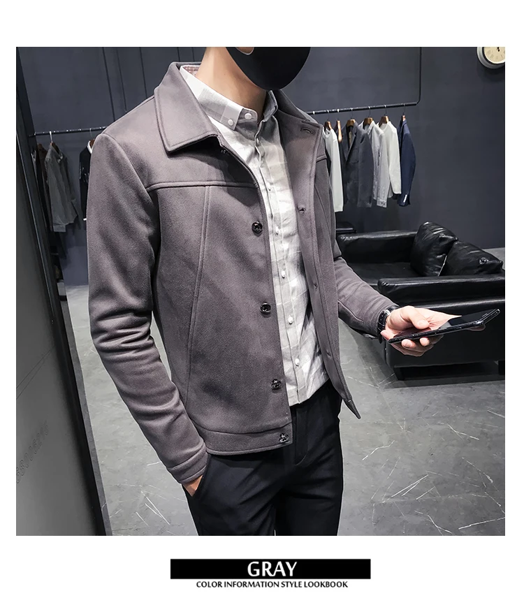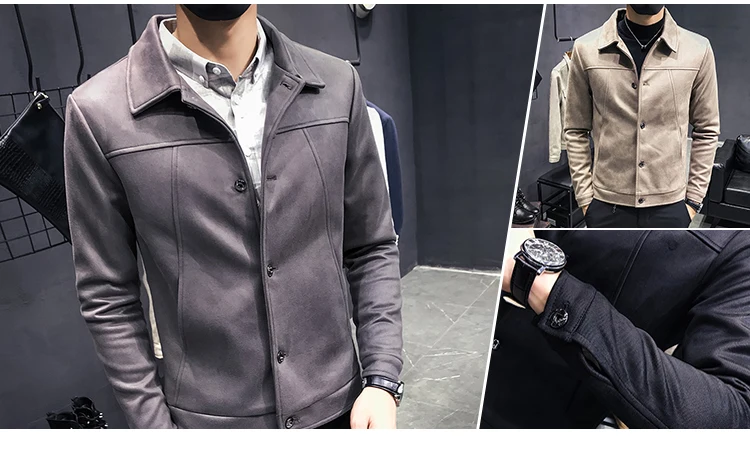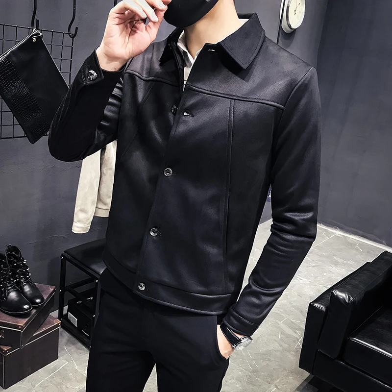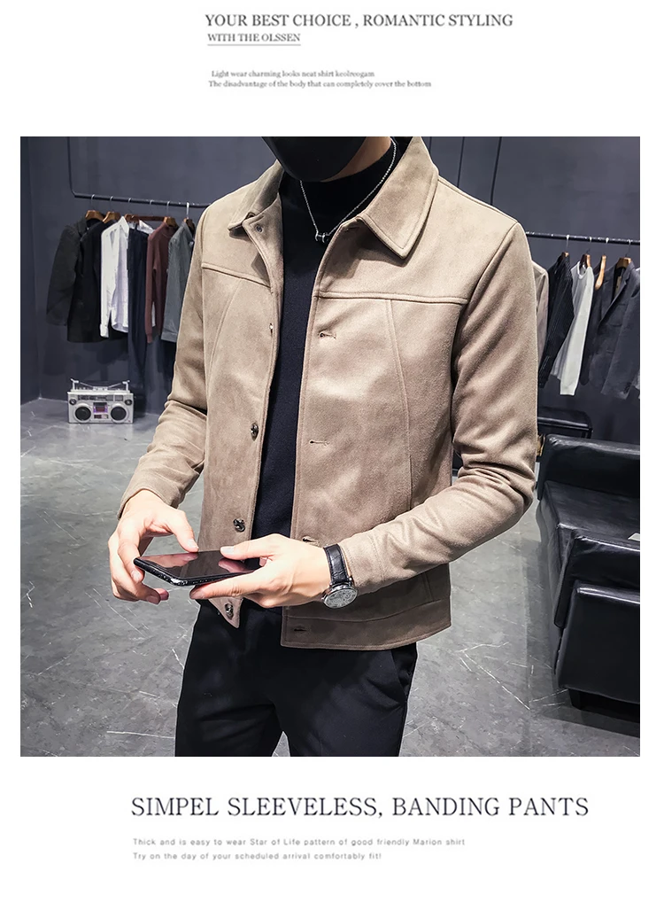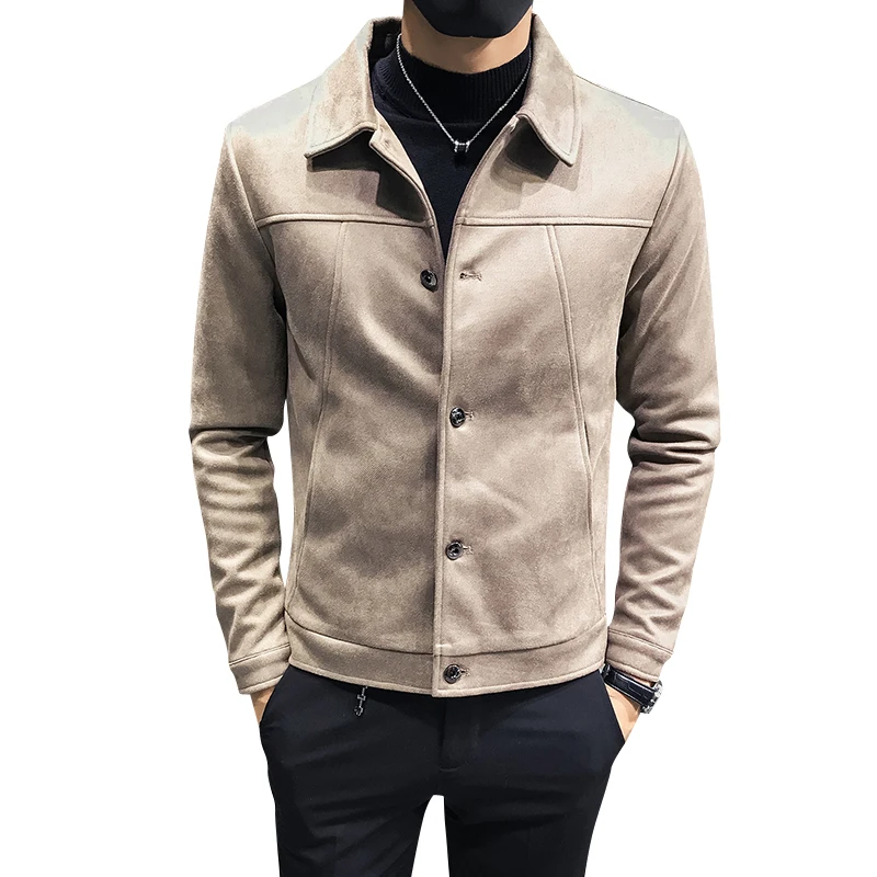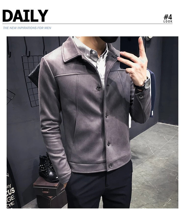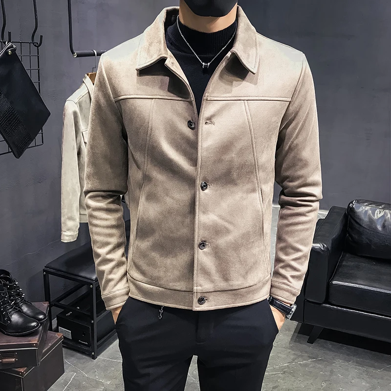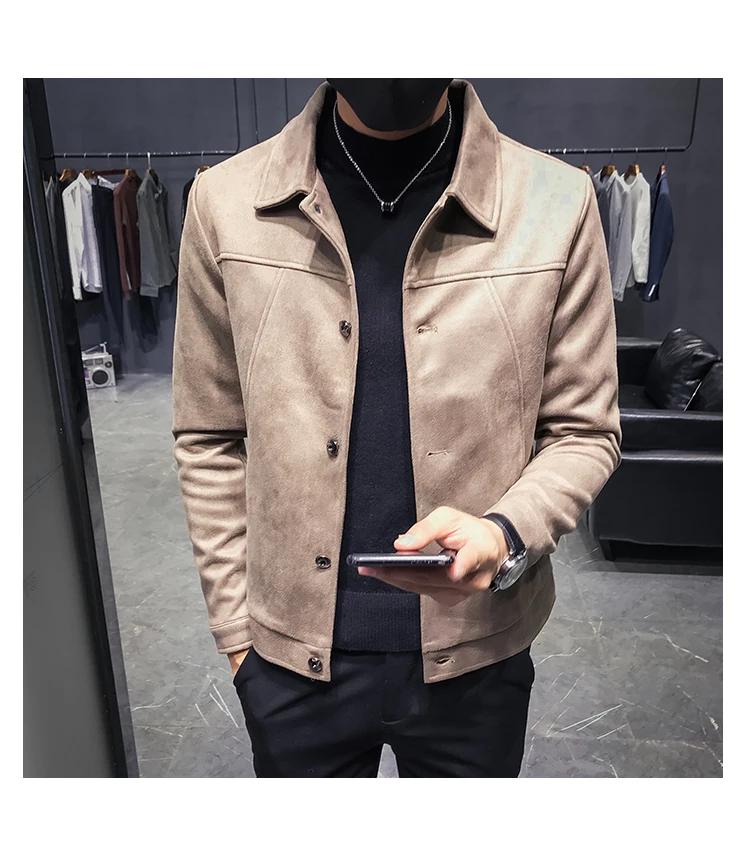 Стильные замшевые куртки мужские осенние пальто хаки винтажные мужские кожаные куртки бомбер черный корейский стиль Мужская одежда серый
