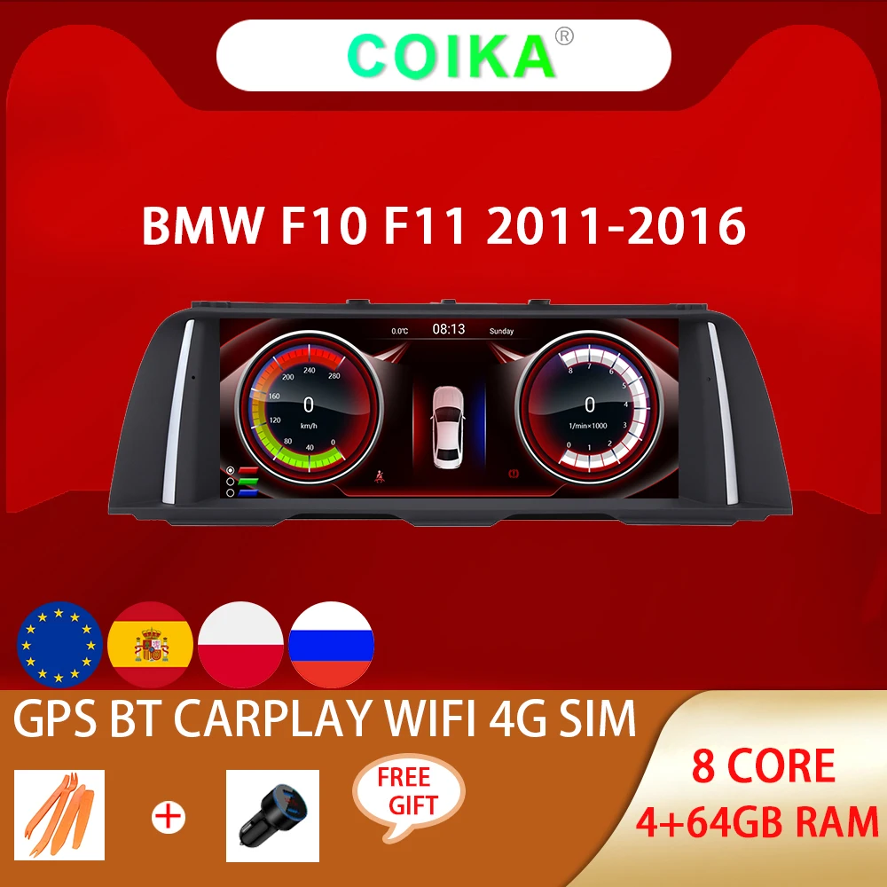 Автомагнитола для BMW F10 F11 2011-2016, 8 ядер, система Android 10, Wi-Fi, SIM, беспроводная, Carplay, BT, GPS, Navi, мультимедийный плеер