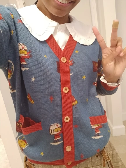 Beyond my expectations! Everything was just as pictured. I ordered the small. The sweater is intended to have an oversized look and it is perfect! The sweater is so soft. and the pockets are real! I love it! It is so unique. (I bought the white shirt separately. It does not come with an undershirt) ~My Measurements~ weight: 49 kilos/ 107lb height: 157cm/ 5'2" waist: 68.5cm/ 27in hip: 87cm/ 34.5in shoulder: 43cm/ 17in bust: 86.5cm/ 34in
