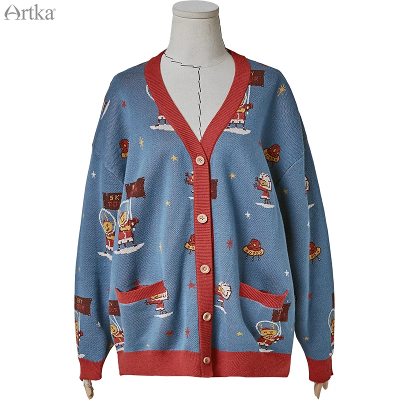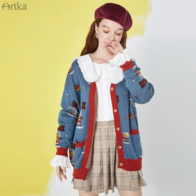 ARTKA 2020 осеннее Новое Женское трикотажное пальто милый Повседневный свитер с v-образным вырезом и длинным рукавом Свободный вязаный кардиган верхняя одежда WB20202Q