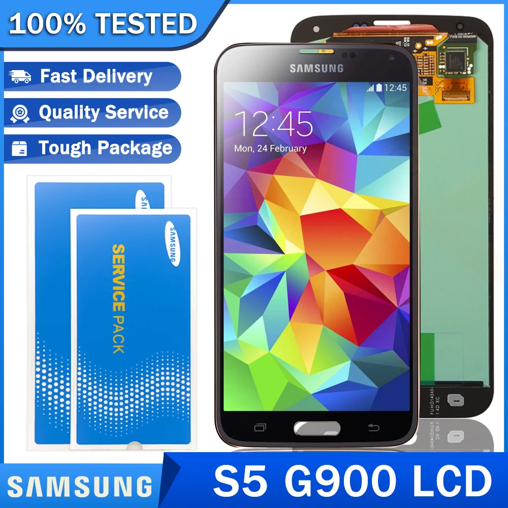 100% Оригинальный AMOLED-дисплей для SAMSUNG Galaxy S5 G900F G900H, ЖК-дисплей, сенсорный экран, дигитайзер в сборе, запасные части