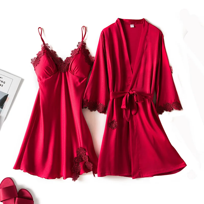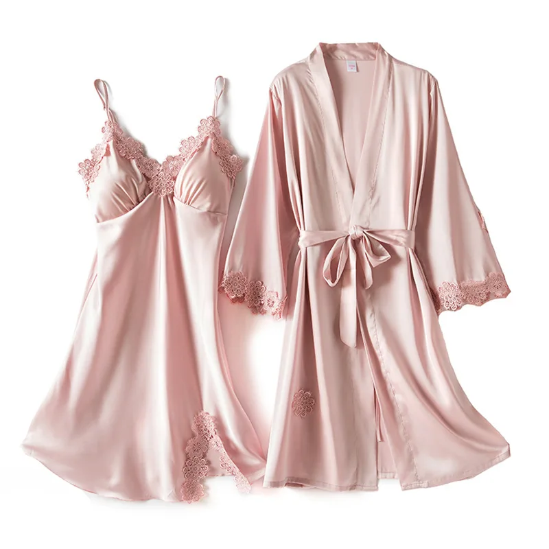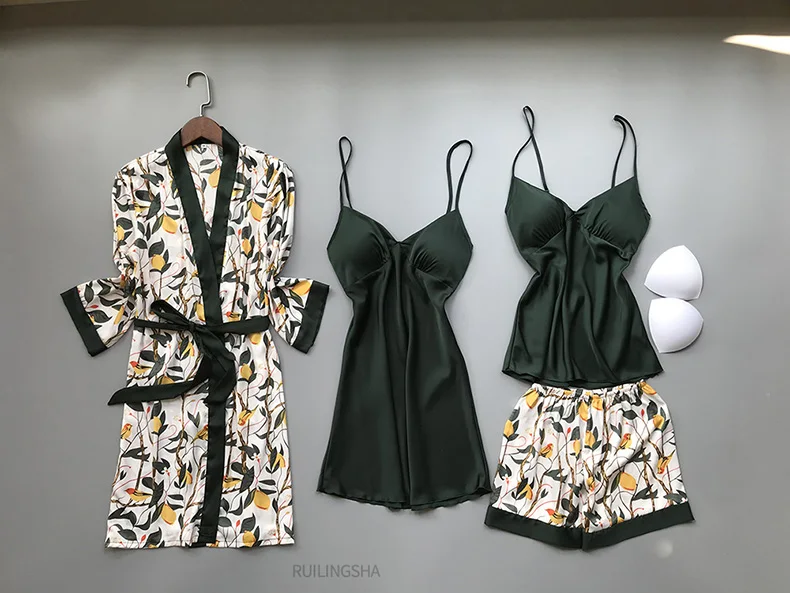 Женский Атласный халат, из искусственного шелка, с цветочным принтом, 4 шт.