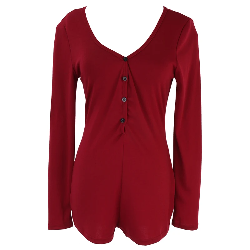 Комбинезон женский трикотажный, с V-образным вырезом и длинным рукавом