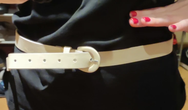 Замечательный пояс, отличное качество. Приятный цвет. Полуматовый. Ширина пояса 2 см. Подойдет на ОТ 84 см, если вы будете носить пояс с платьем или рубашкой.