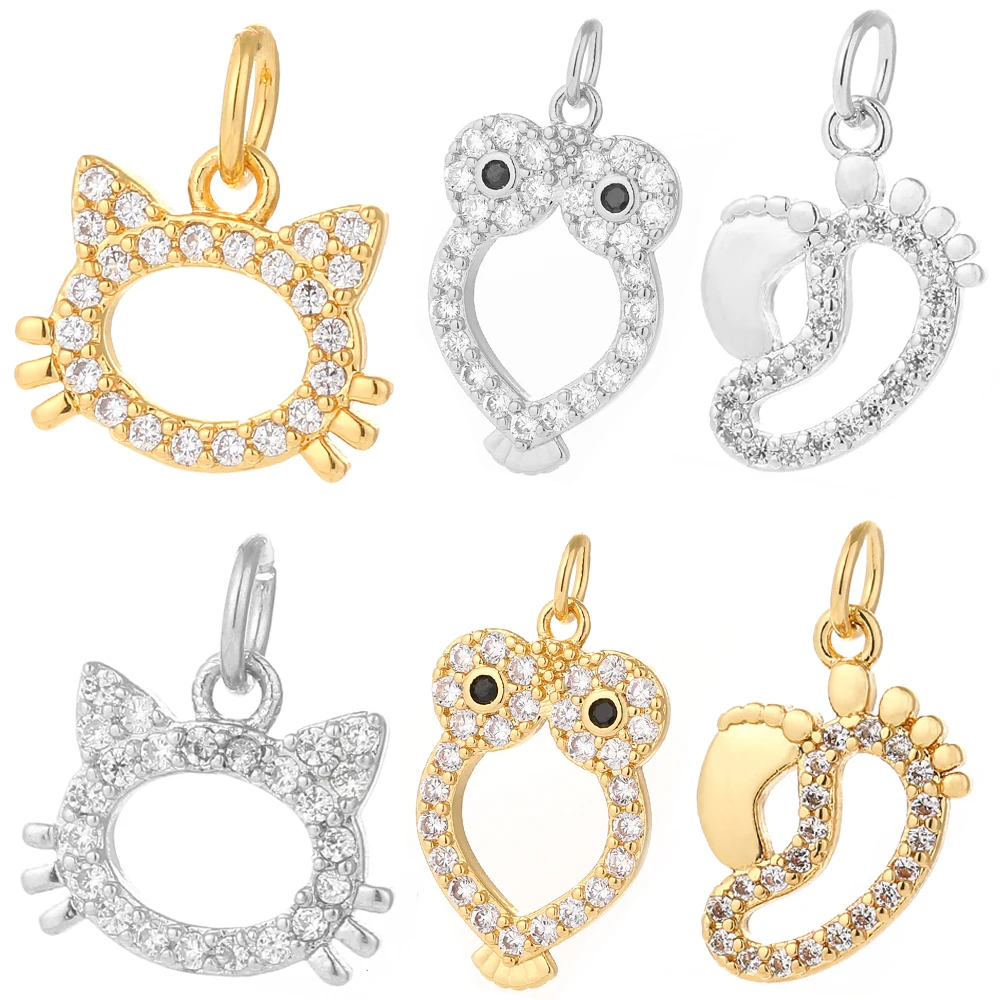 Материал для изготовления ожерелья, серьги в виде животных, кошачьи лапки, ювелирные изделия сделай сам, маленькие ювелирные изделия, очаровательное изделие из меди и циркония с отверстием 5 мм