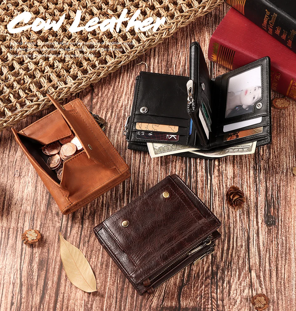 Мужской бумажник KAVIS, винтажный короткий кошелек из коровьей кожи...