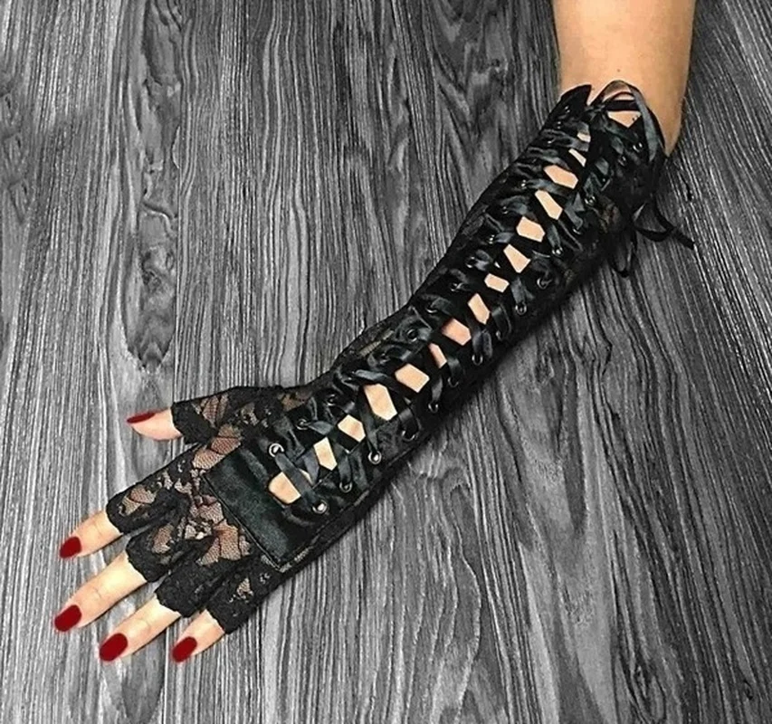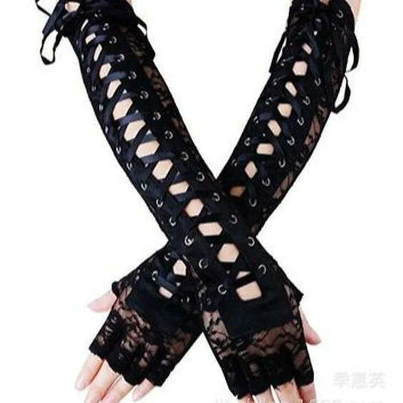1 пара, женские длинные перчатки в стиле ретро для Хэллоуина, кружевной корсет, черные перчатки до локтя, без пальцев