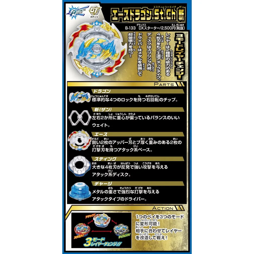 B-133 DX стартер Ace Dragon Sting Charge Zan (с пусковым устройством)свободные деталиTakara Tomy Beyblade BurstGatinkoGT Series