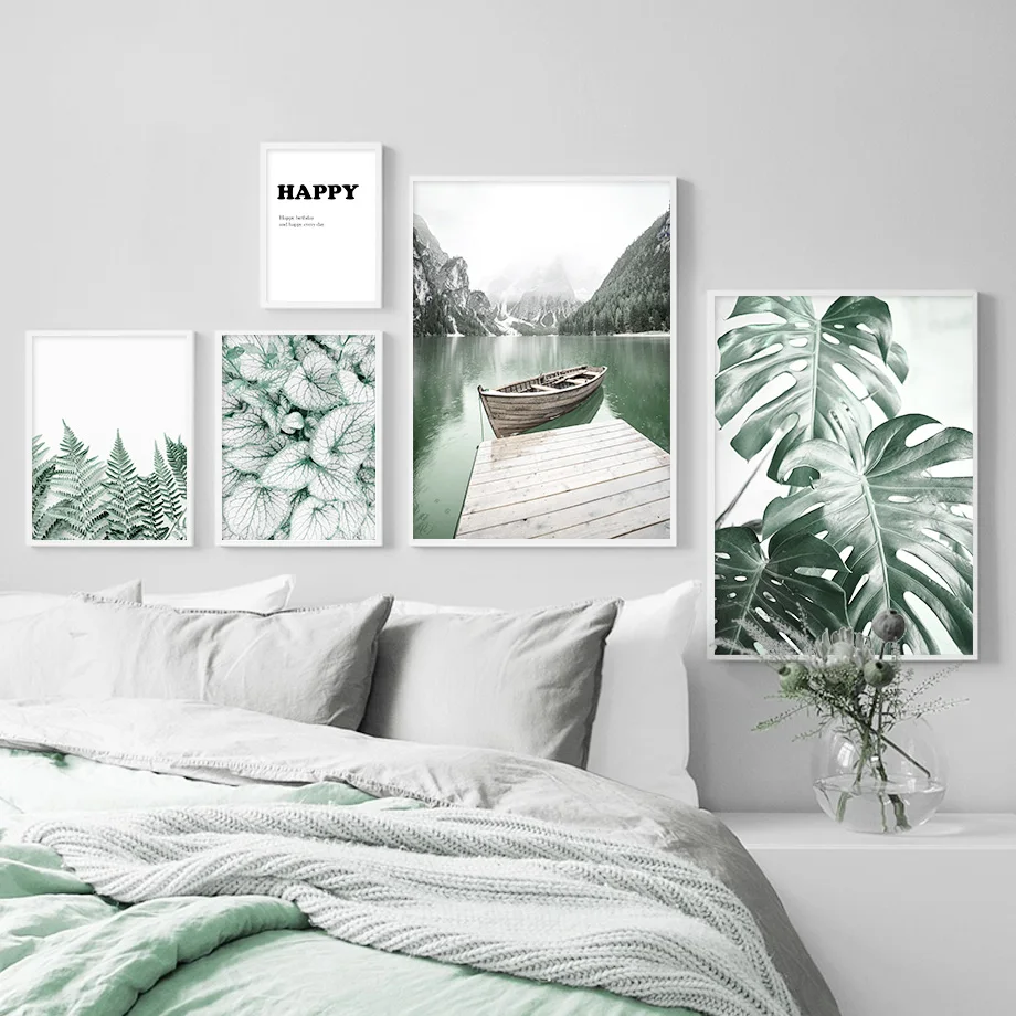 Зеленые абстрактные линии растения листья цитаты настенная живопись...